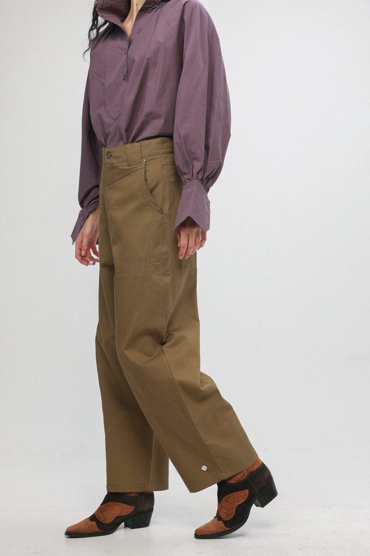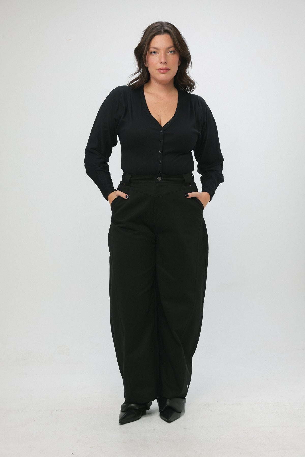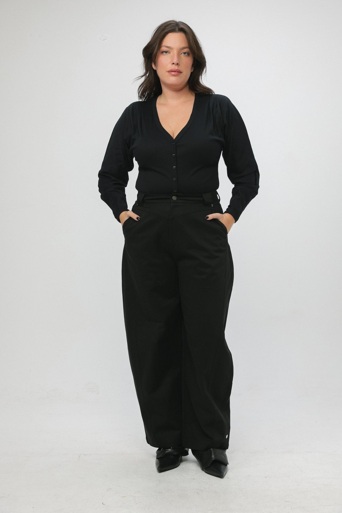 - Structured waistband with button closure