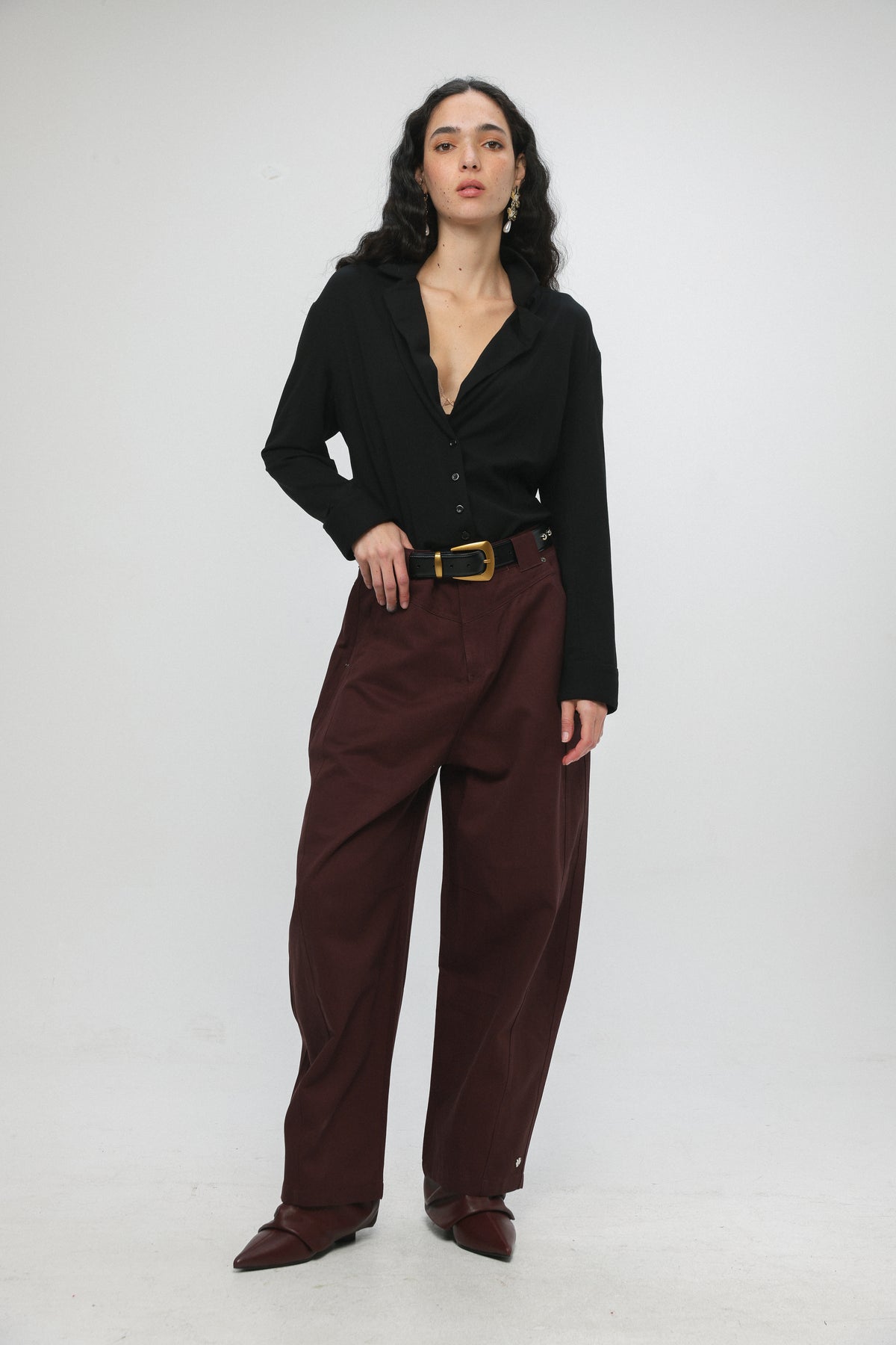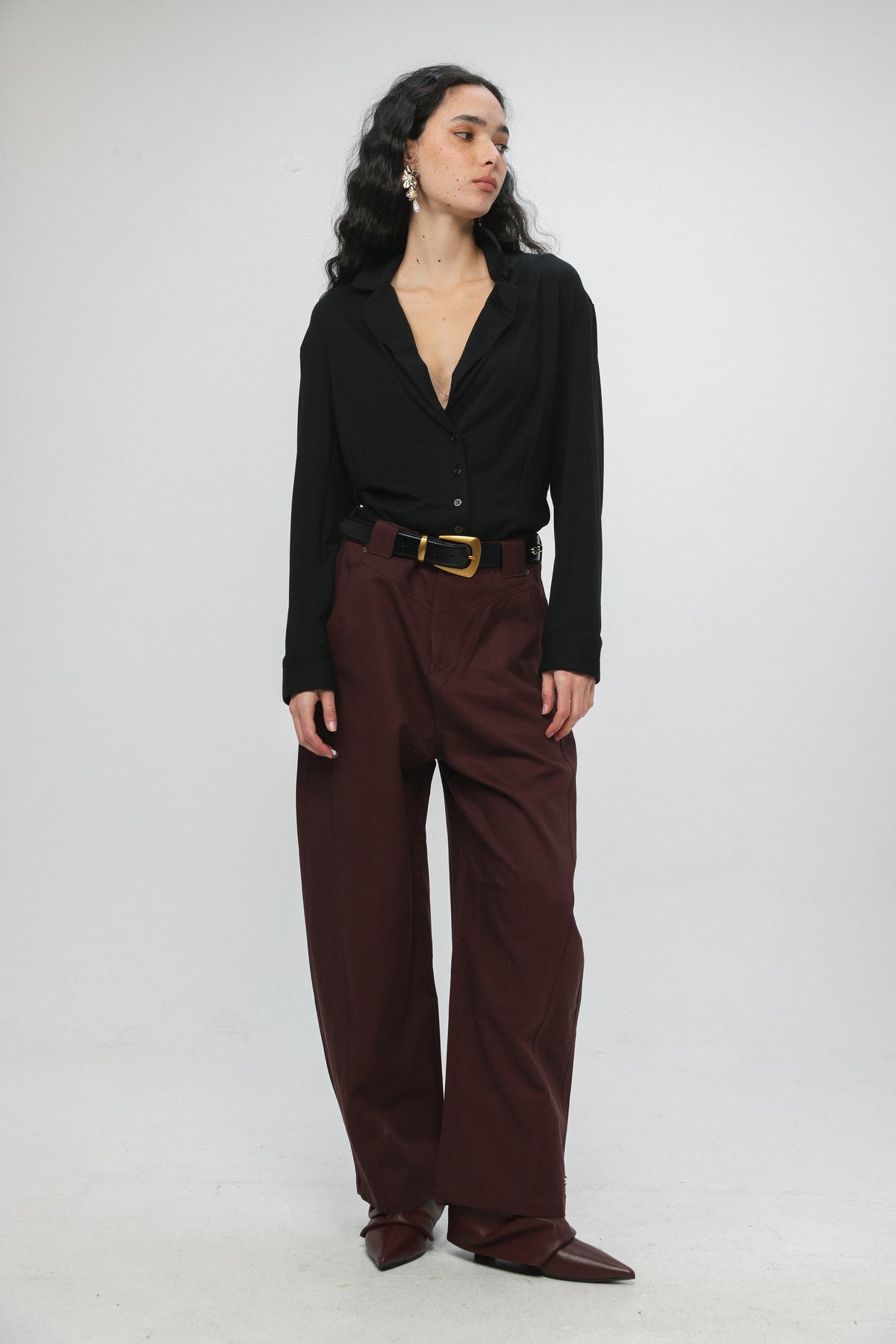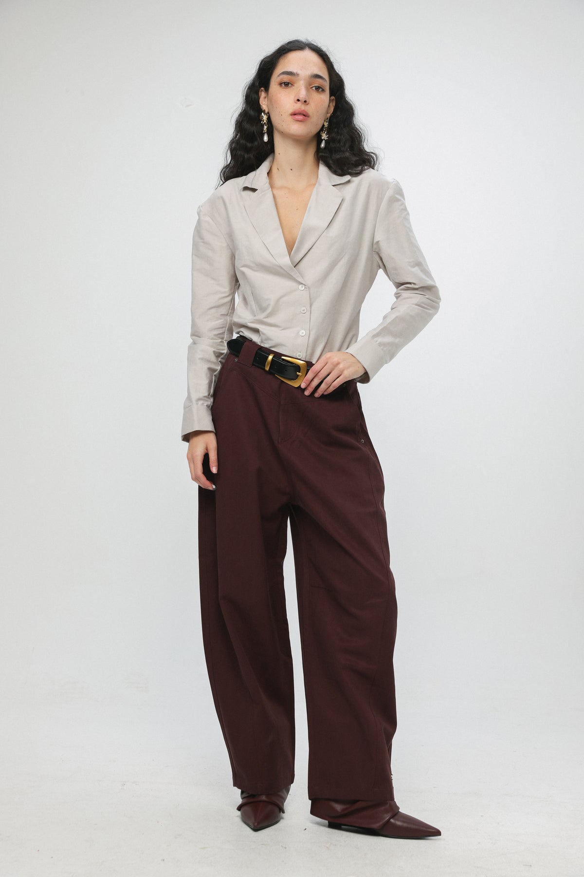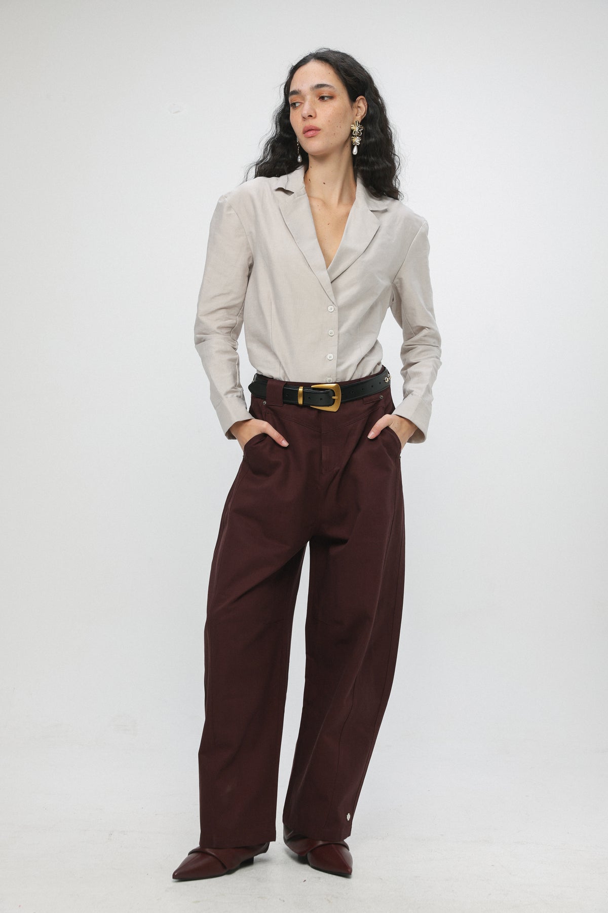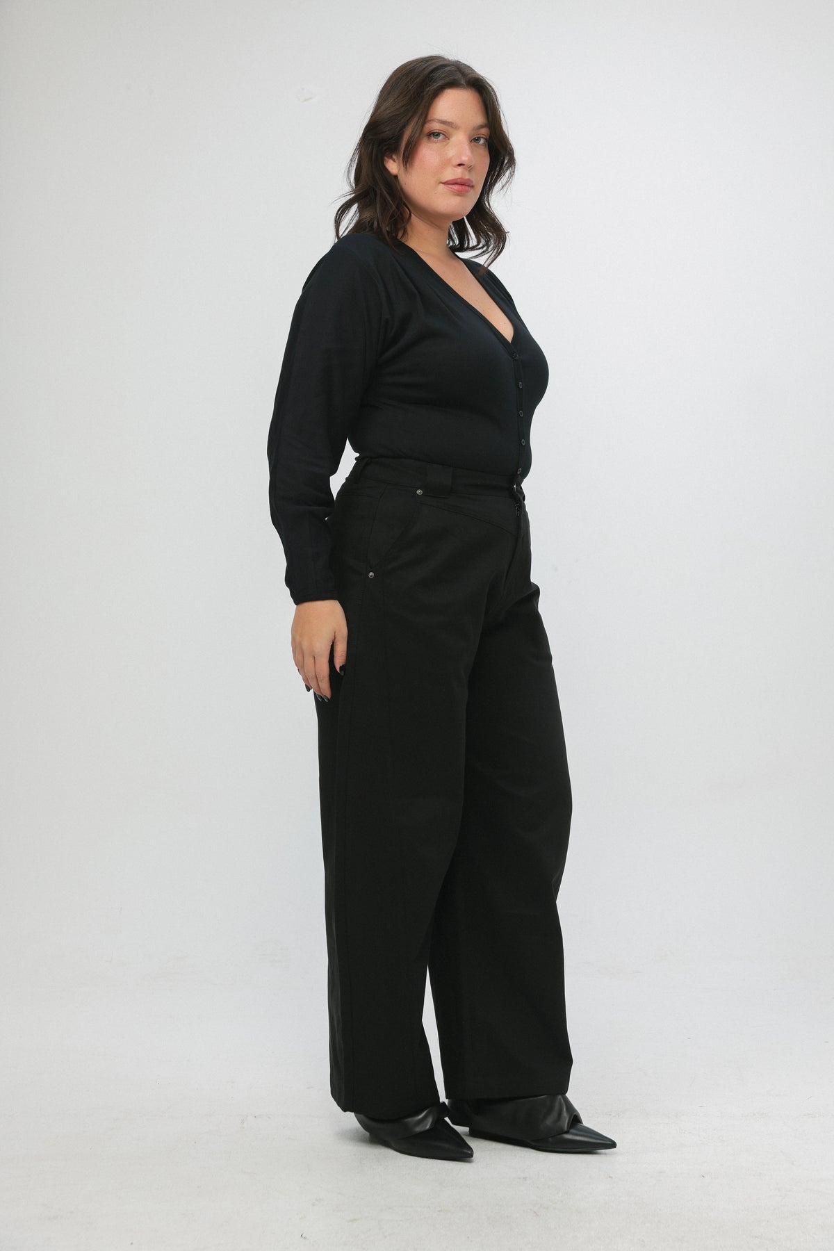- Structured waistband with button closure