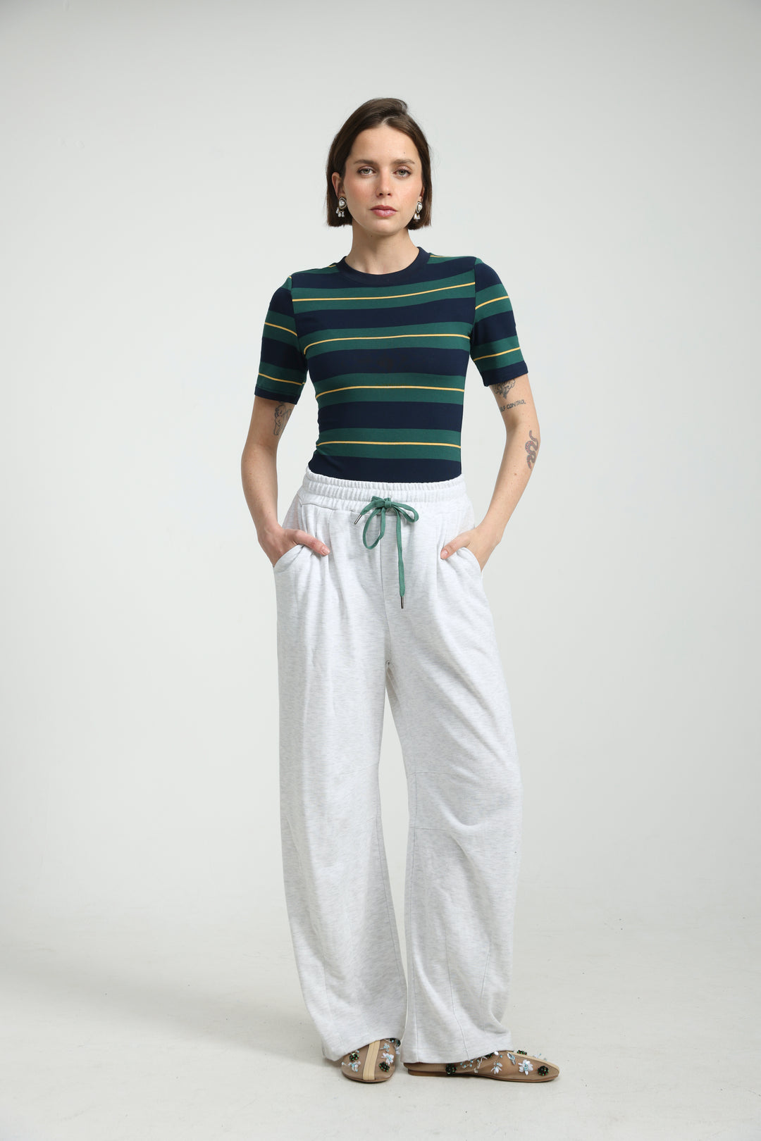 Popper Cream/Green Joggers