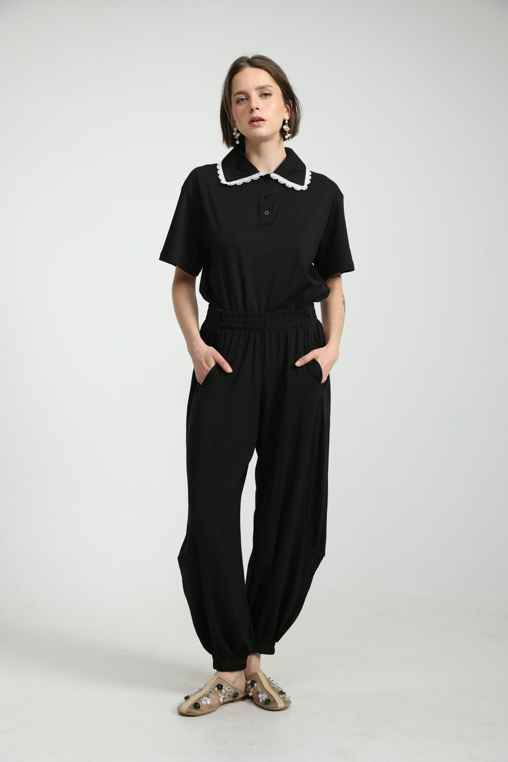 Popper Black/Rhinestones Joggers