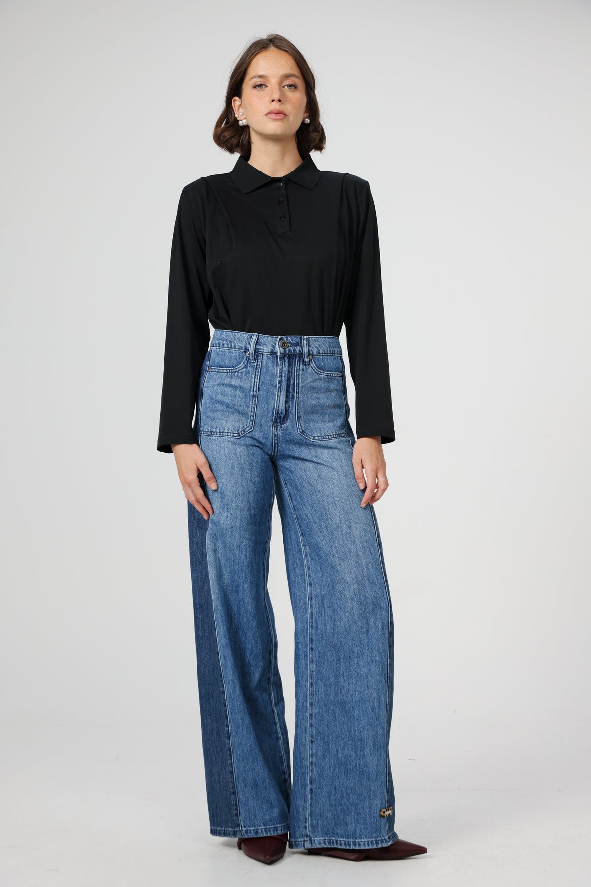 - Two-tone denim panels