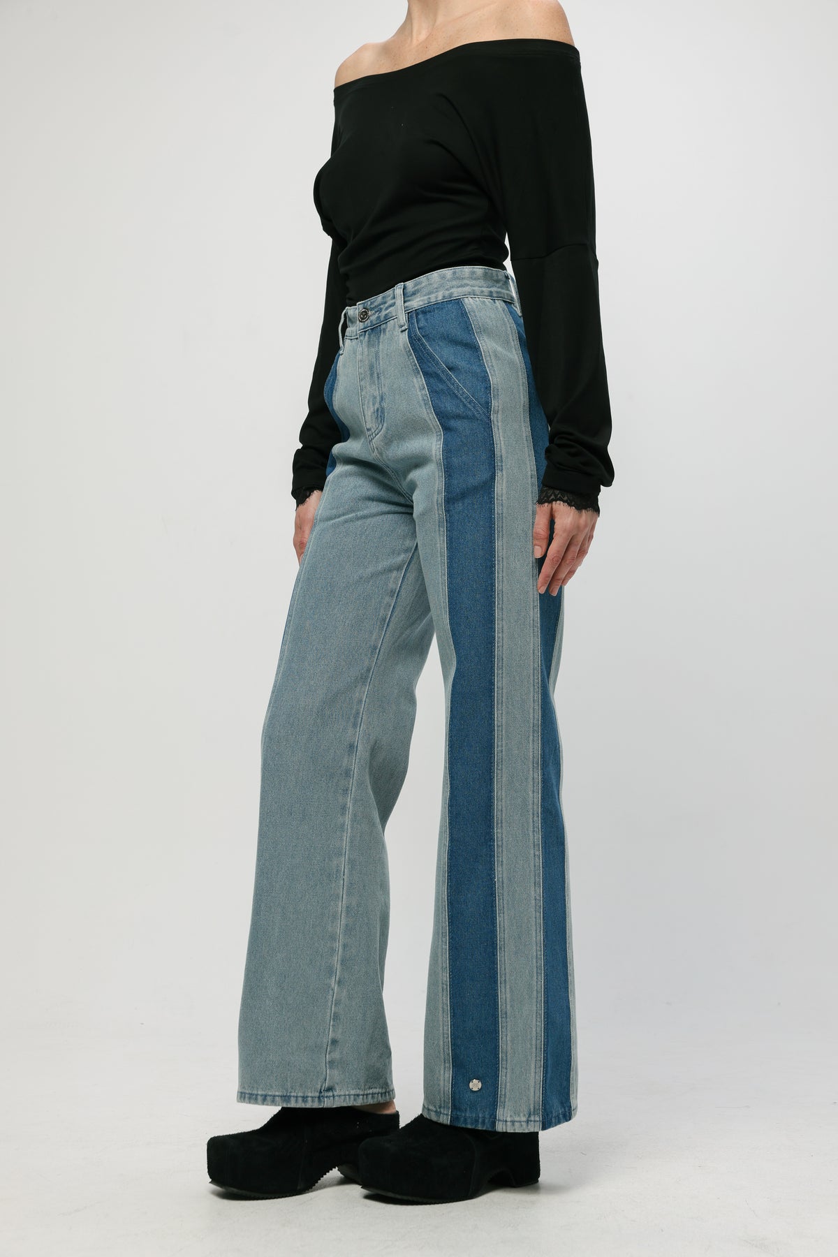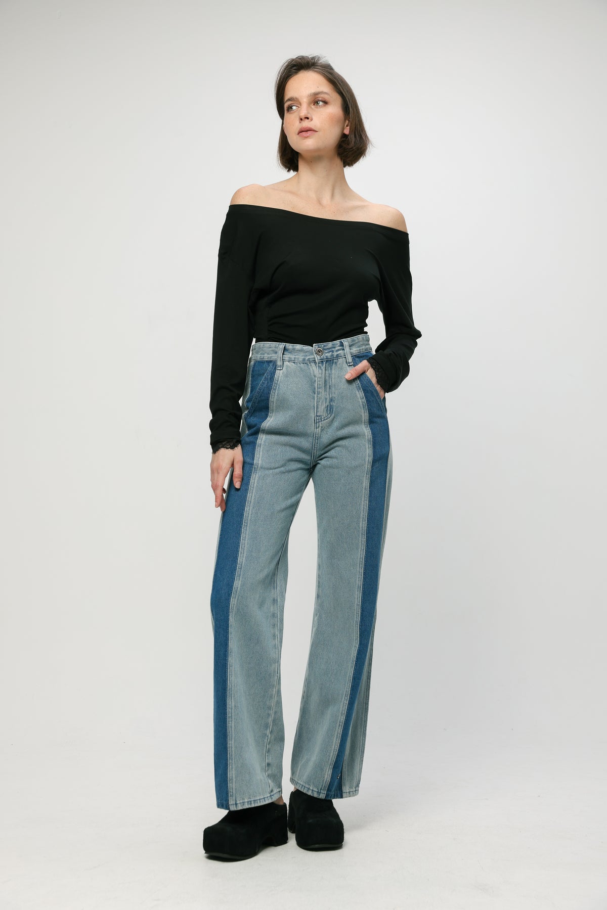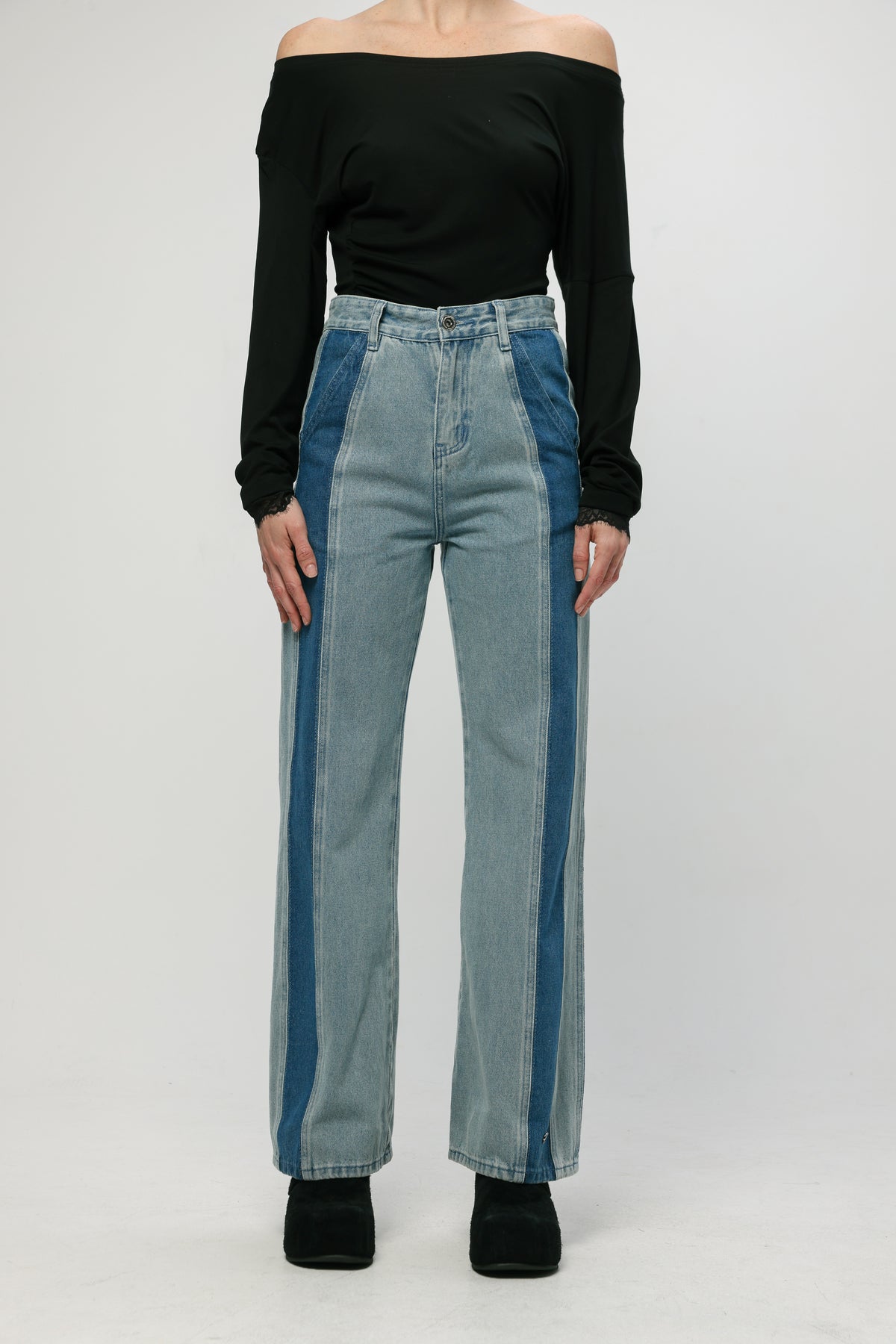 ג'ינס כחול בהיר עם פאנלים מנוגדים Star 201 Light Blue Mix Denim