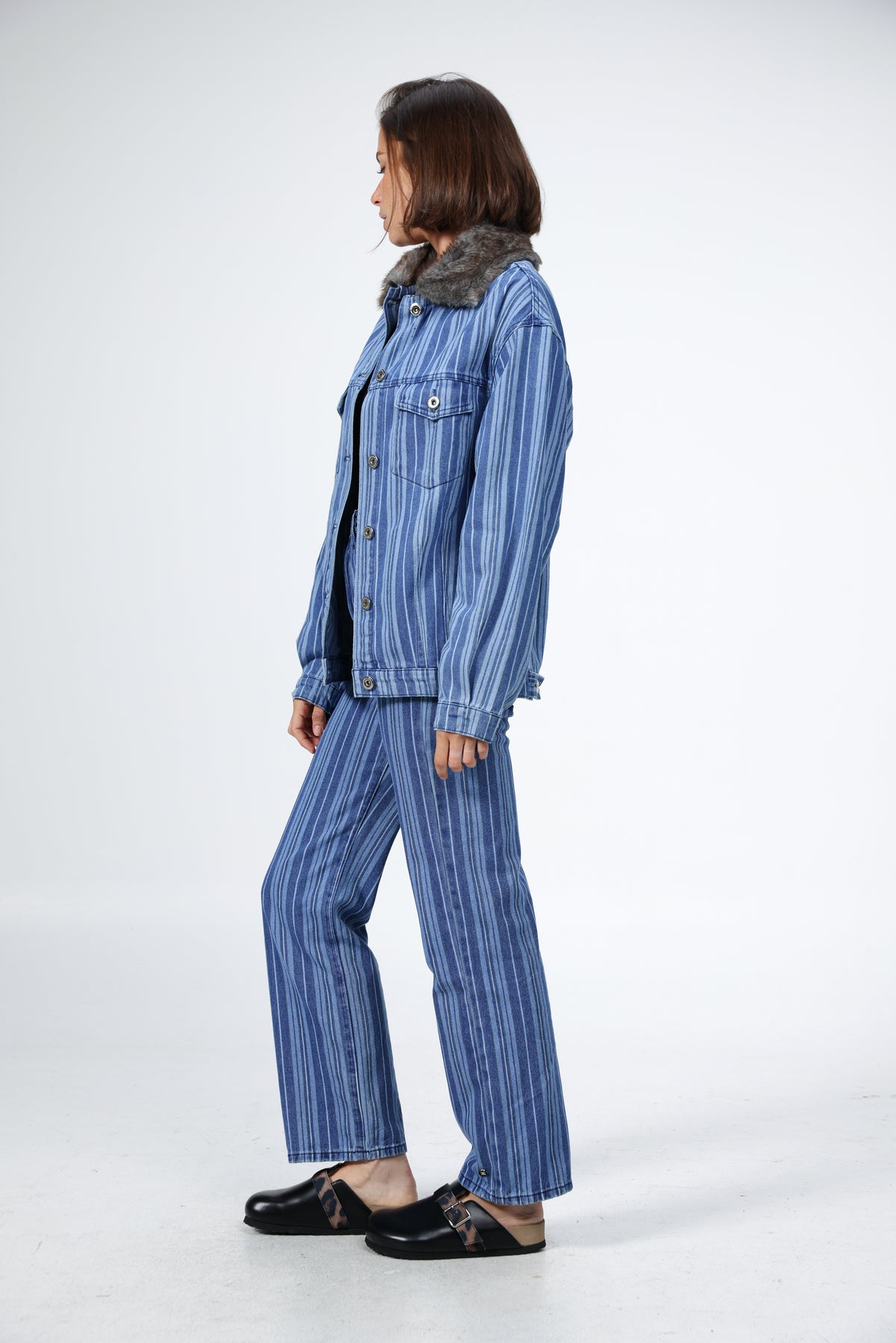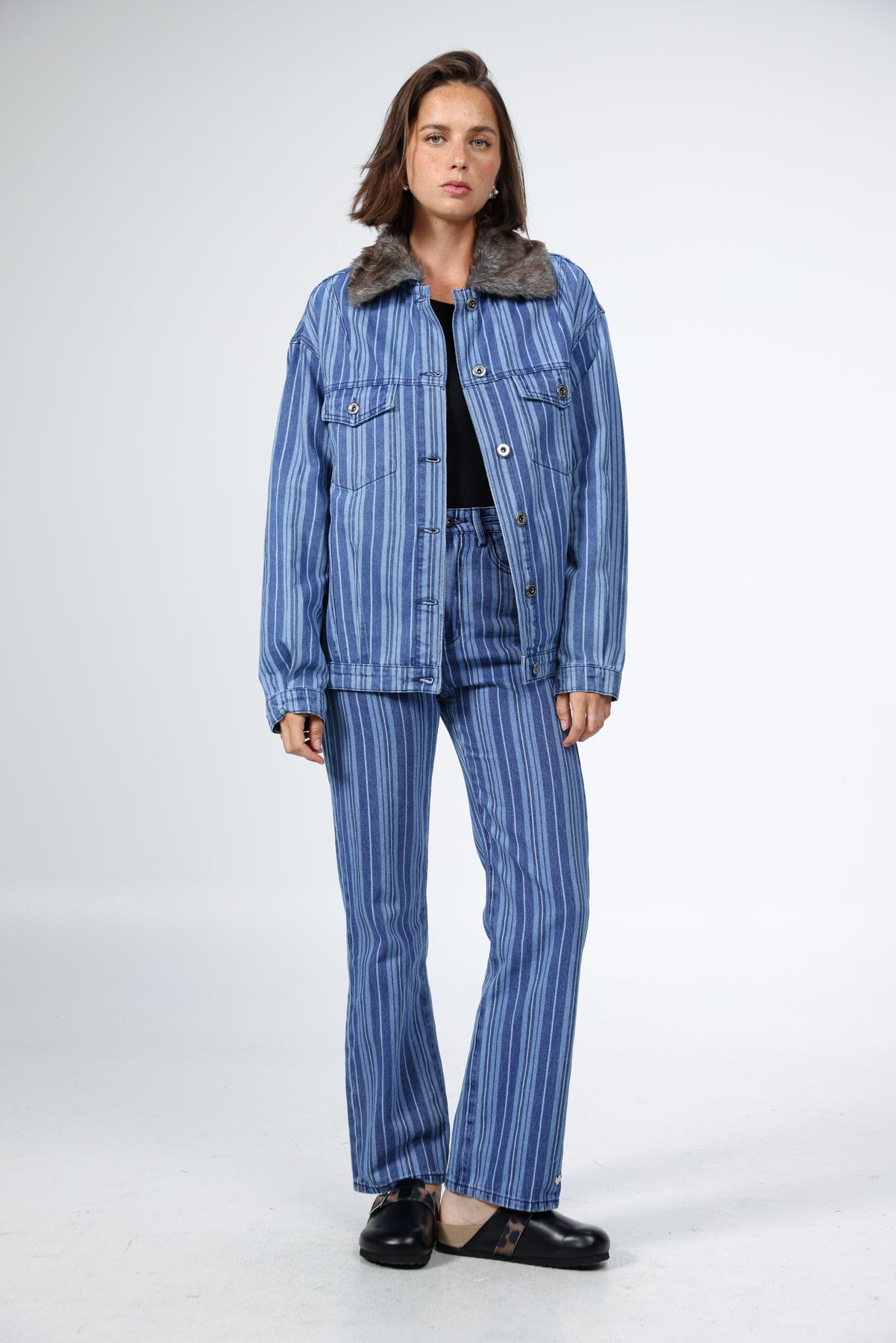 Farm Blue Striped Denim Jacket