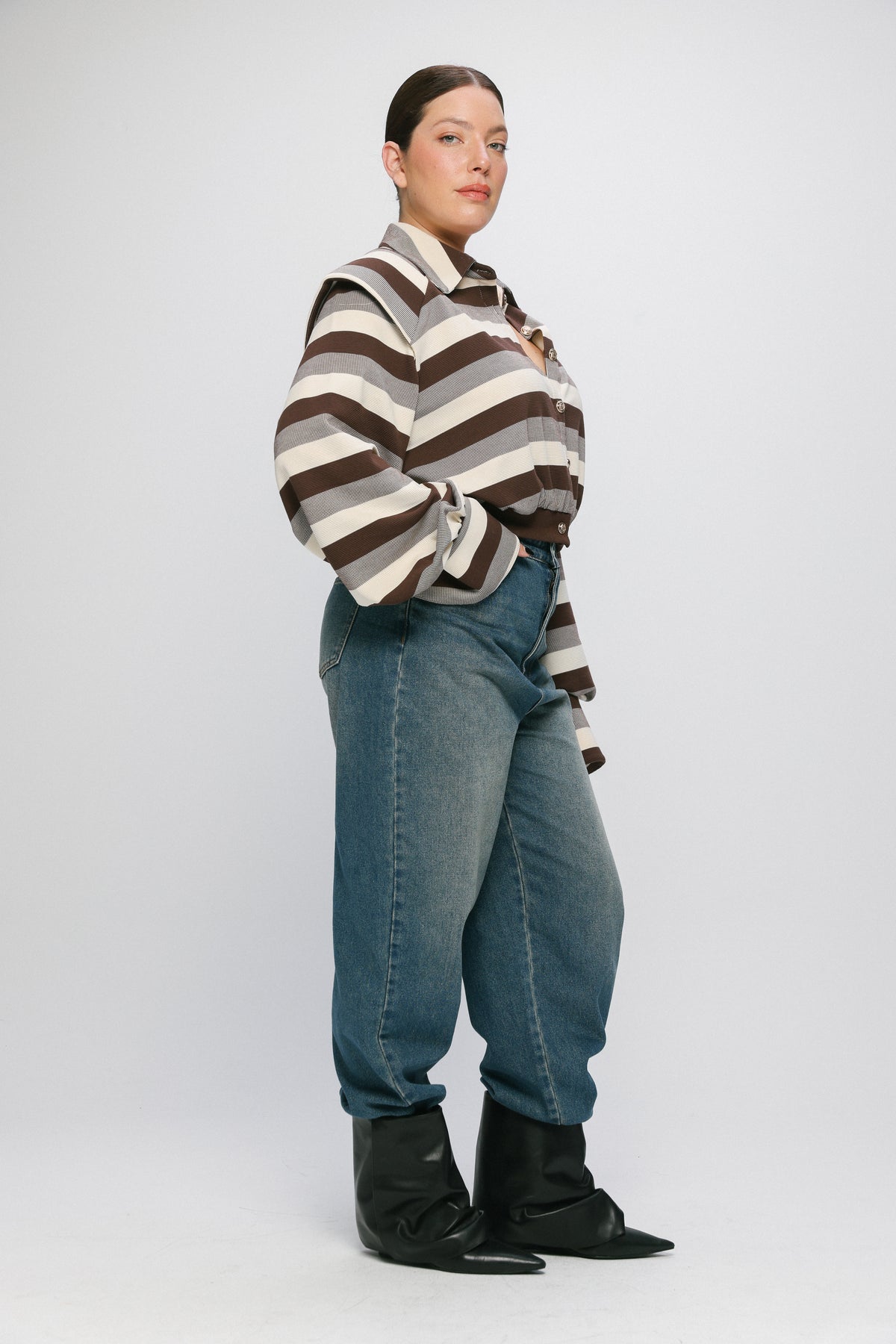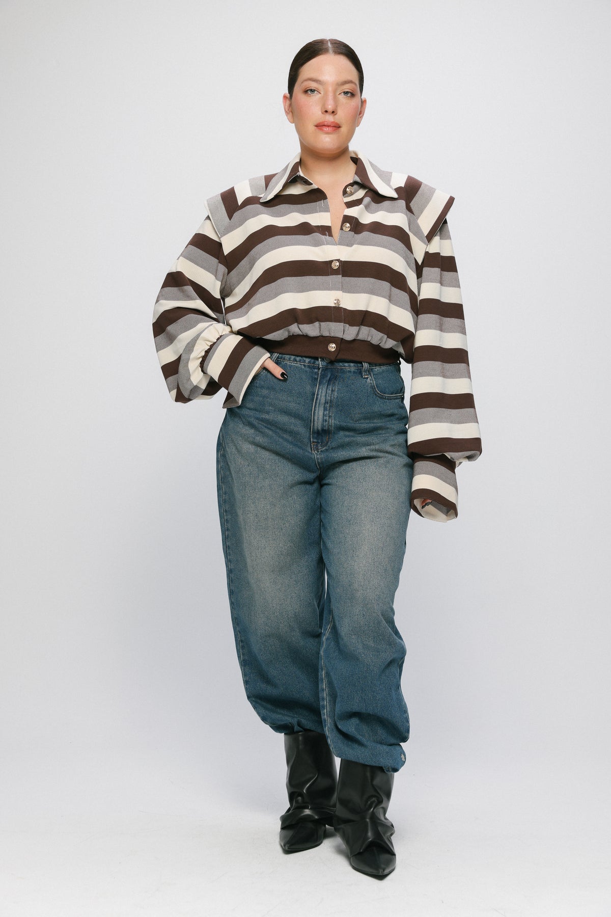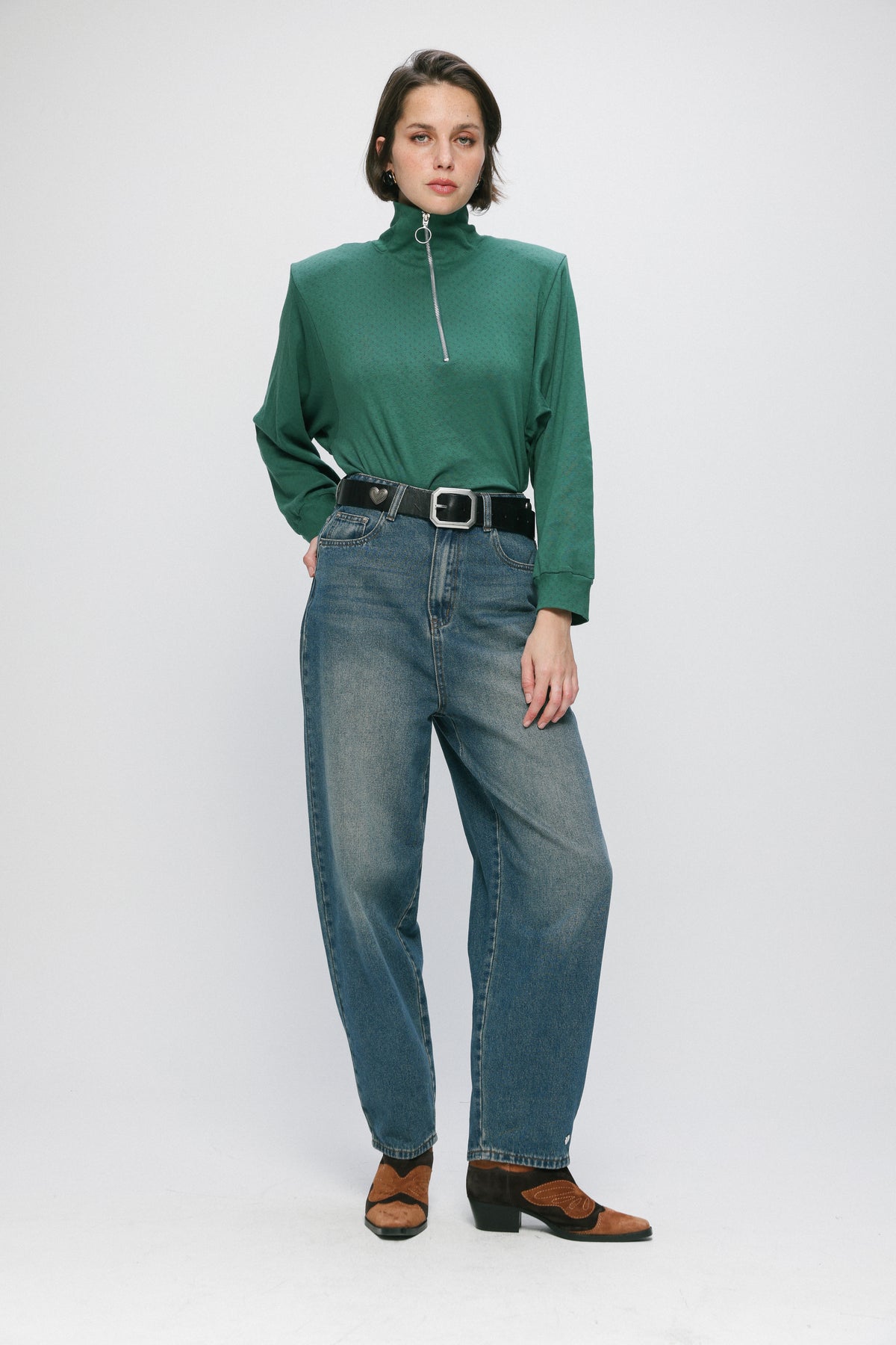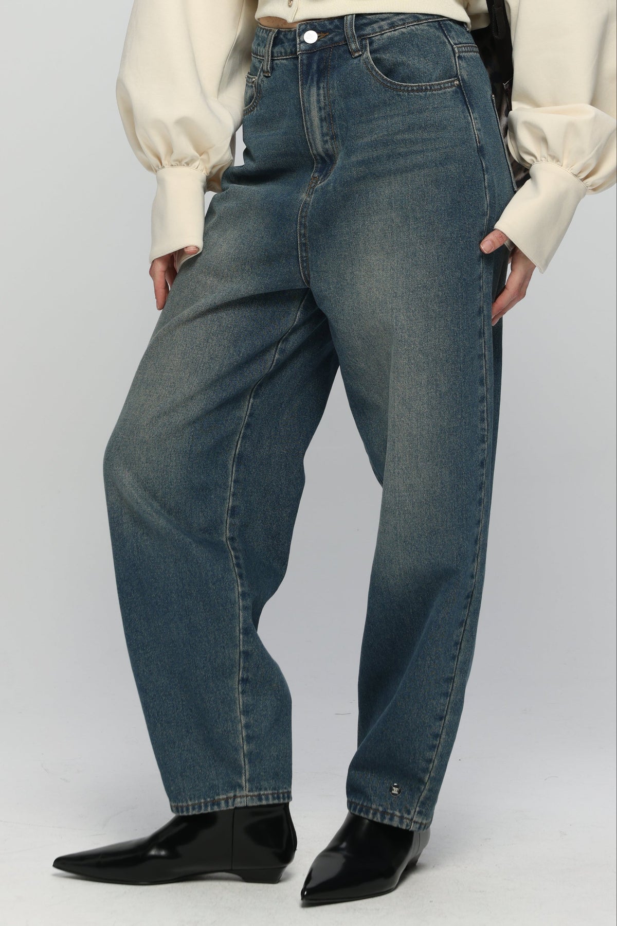 - Zip fly with a button closure