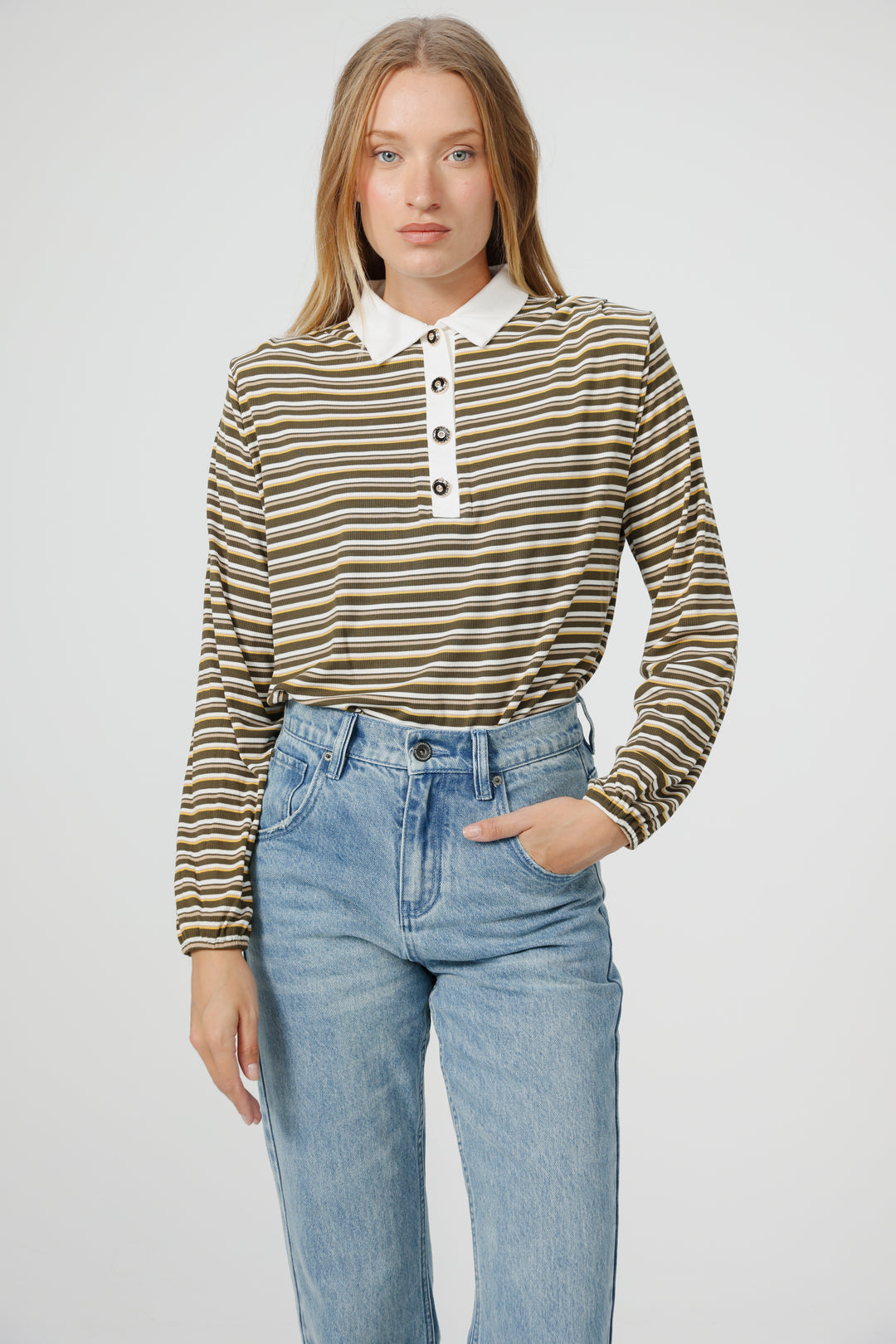 Forward Olive Striped Padded Polo