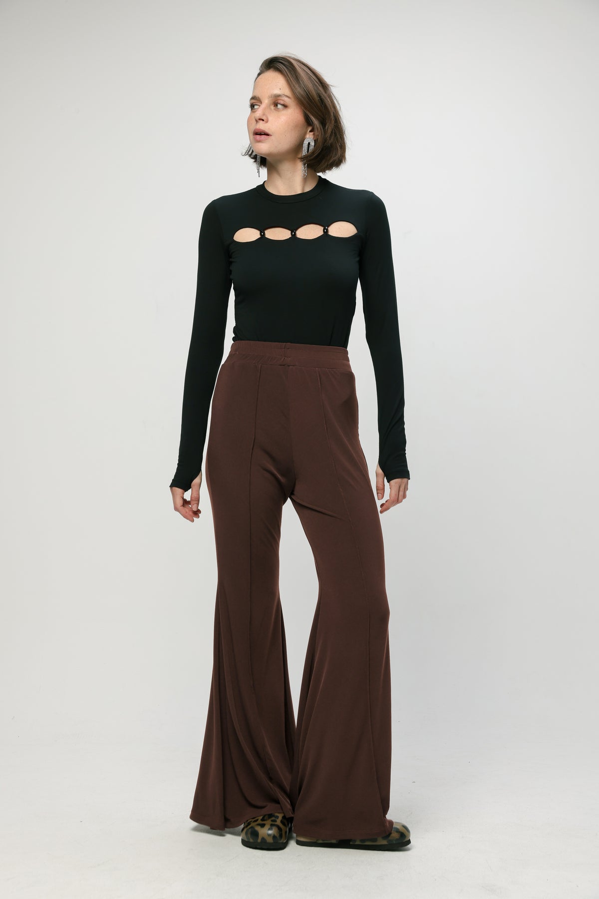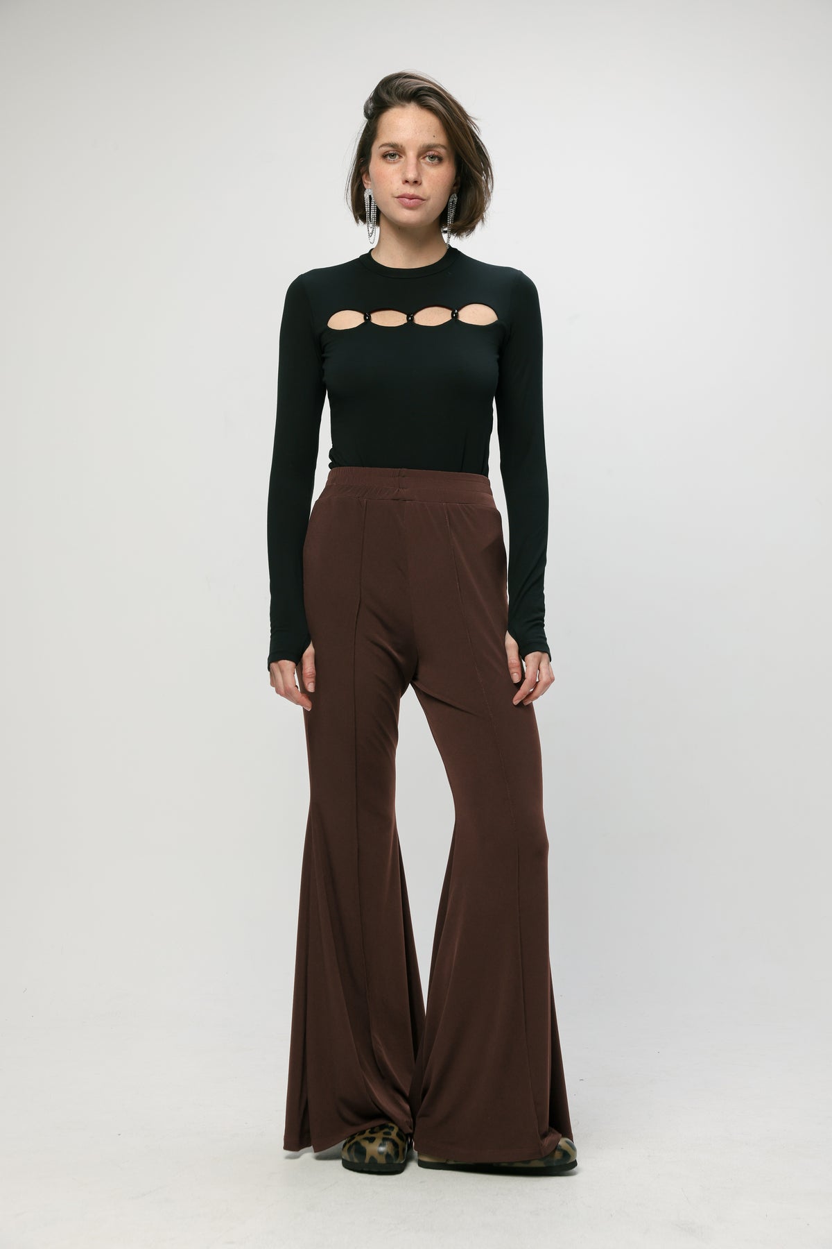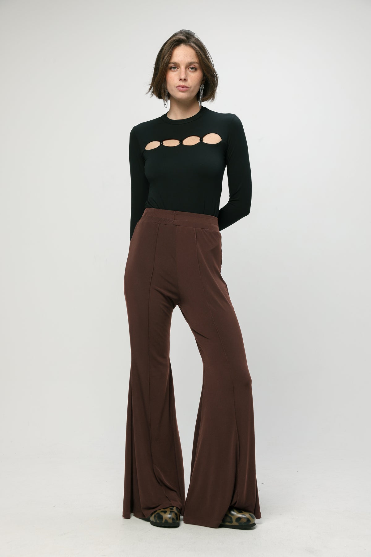 • Flowy wide leg silhouette