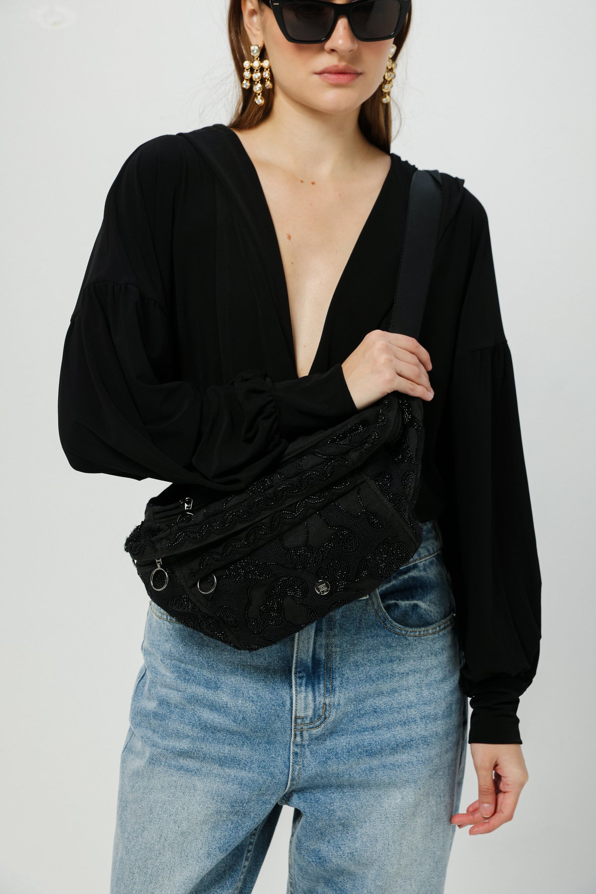 EE Black Beaded Belt Bag