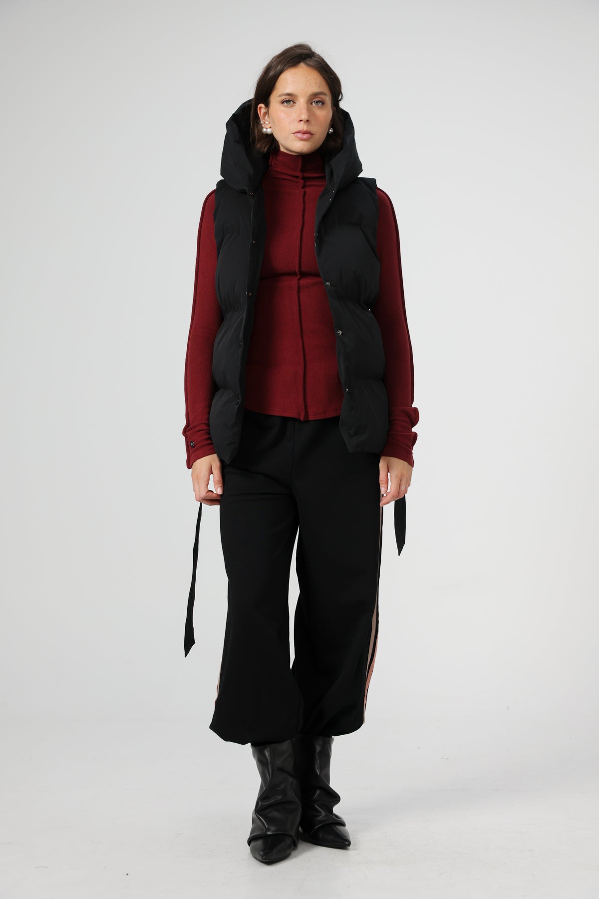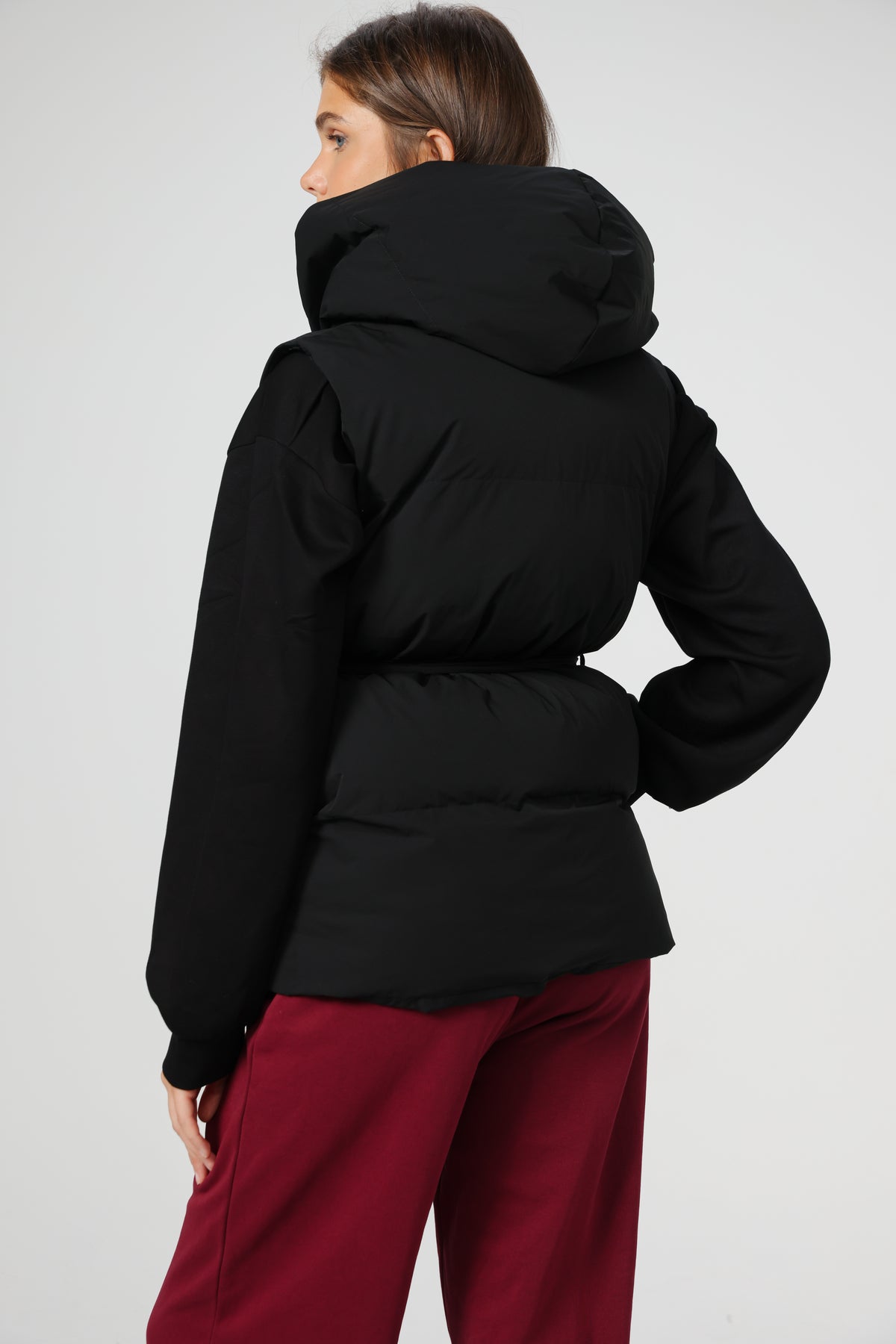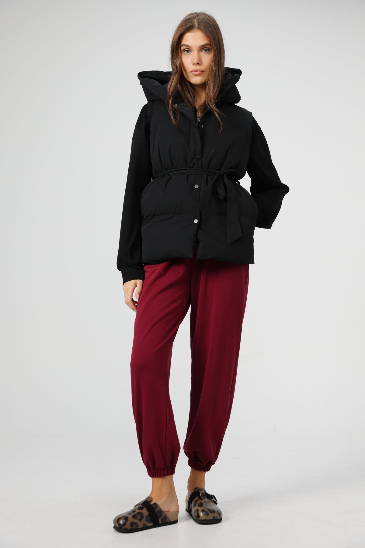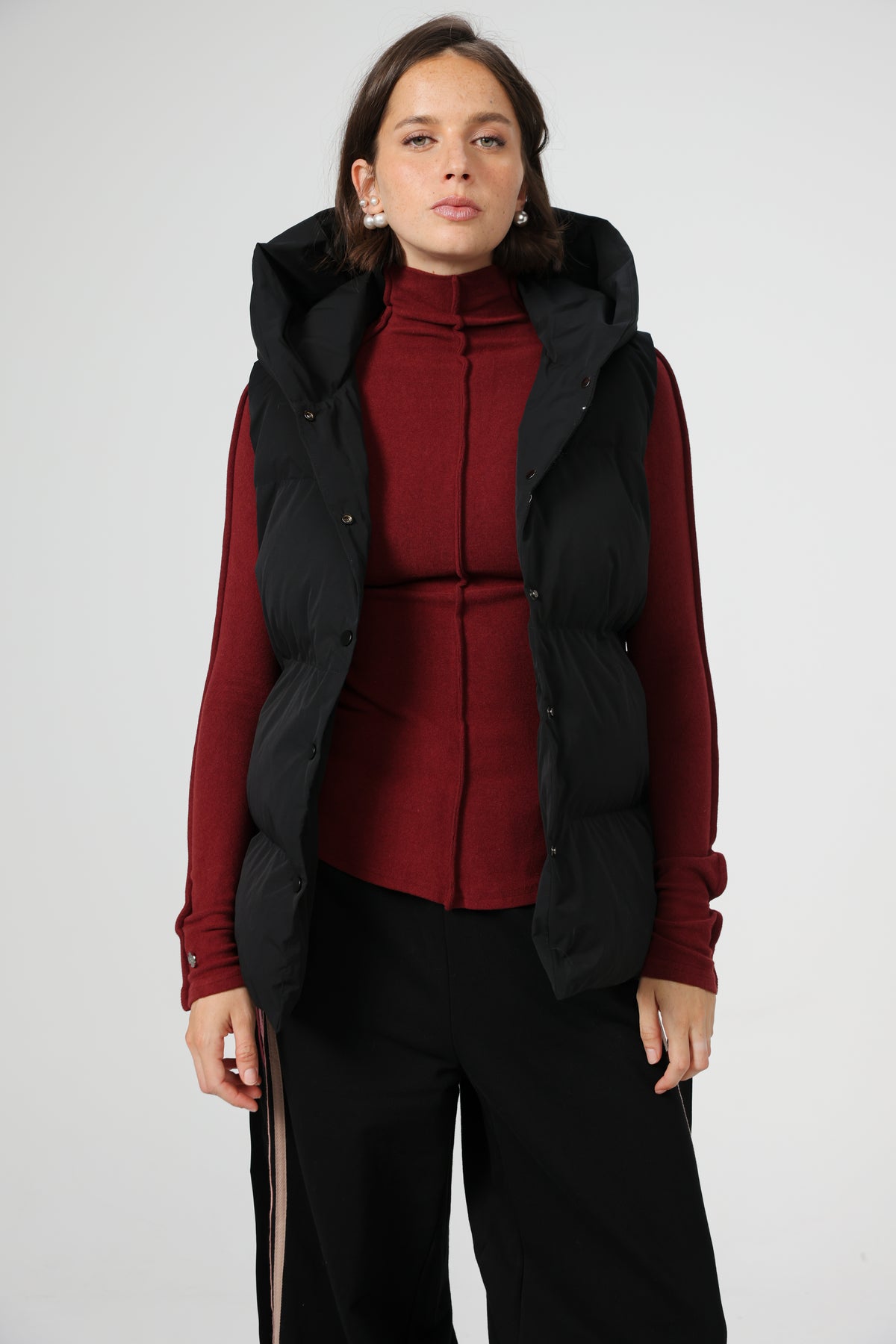 וסט שחור עם קפוצ'ון Quilted Black Vest