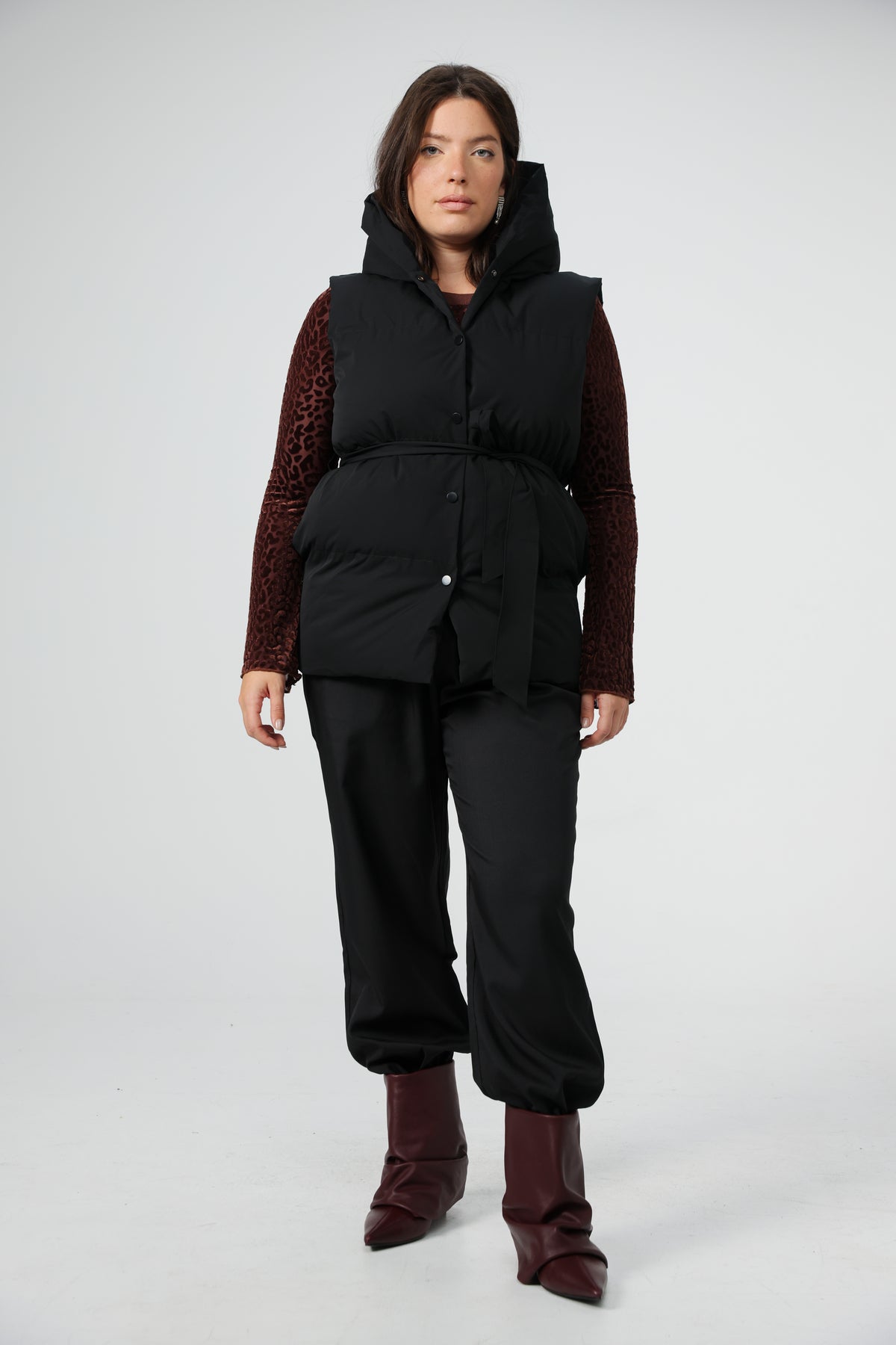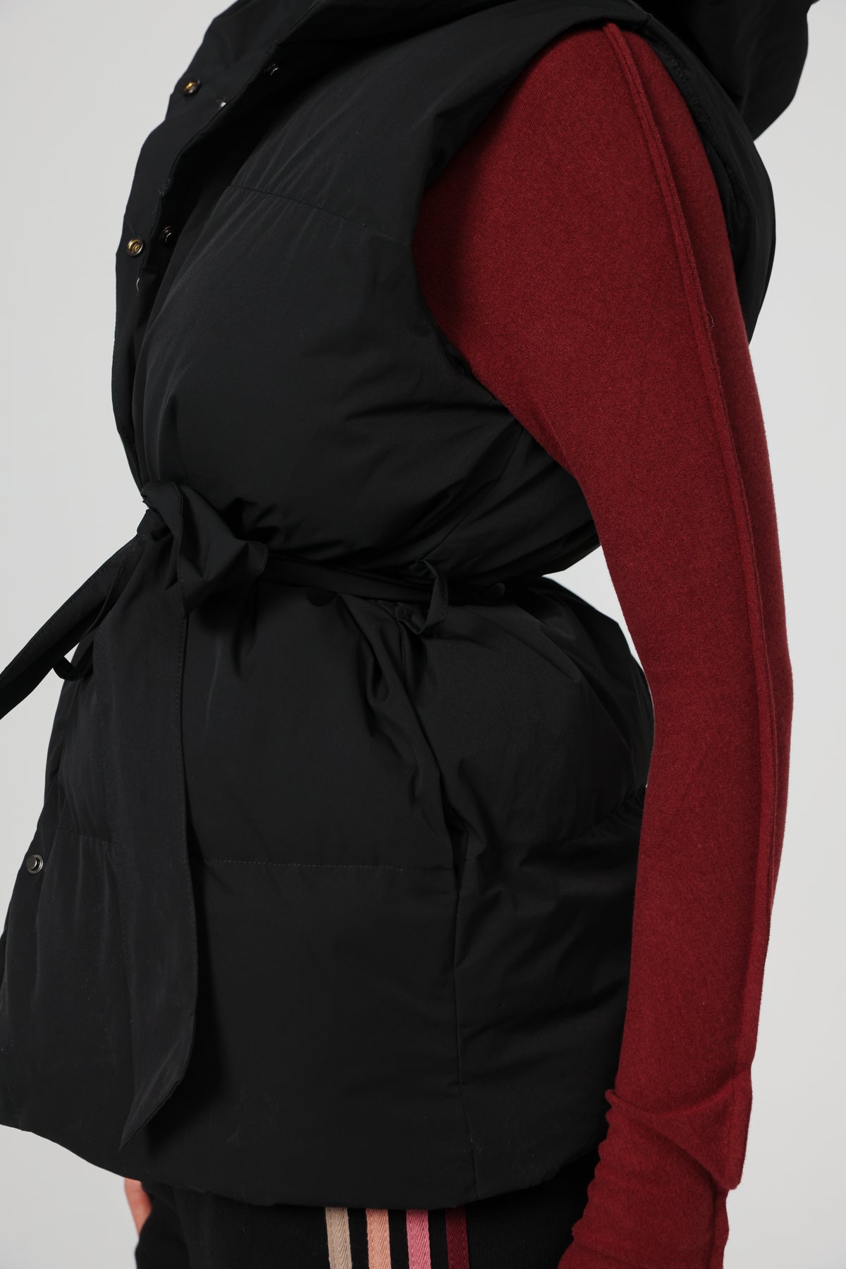 וסט שחור עם חגורה נשלפת Quilted Black Vest