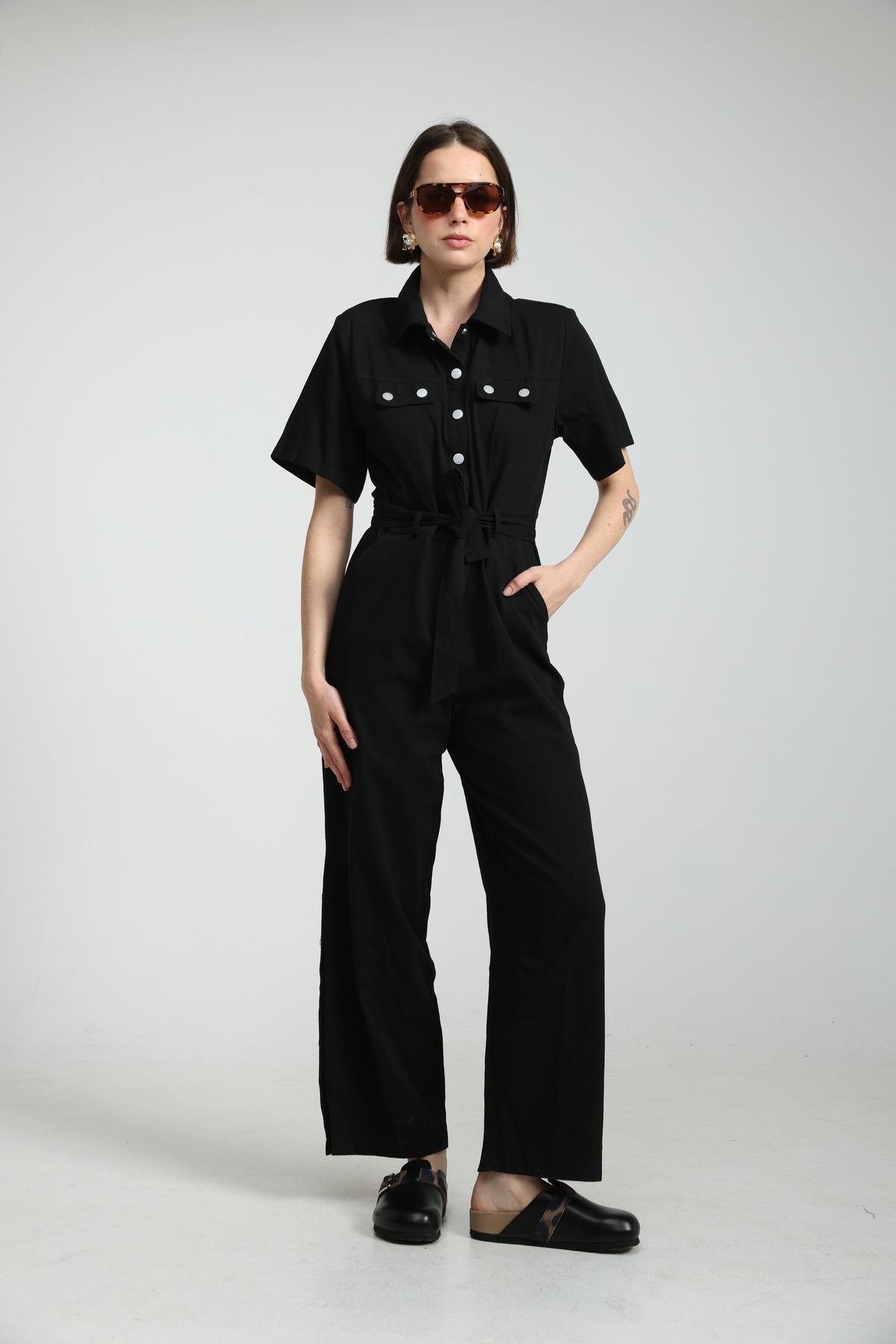 - Front snap button closure