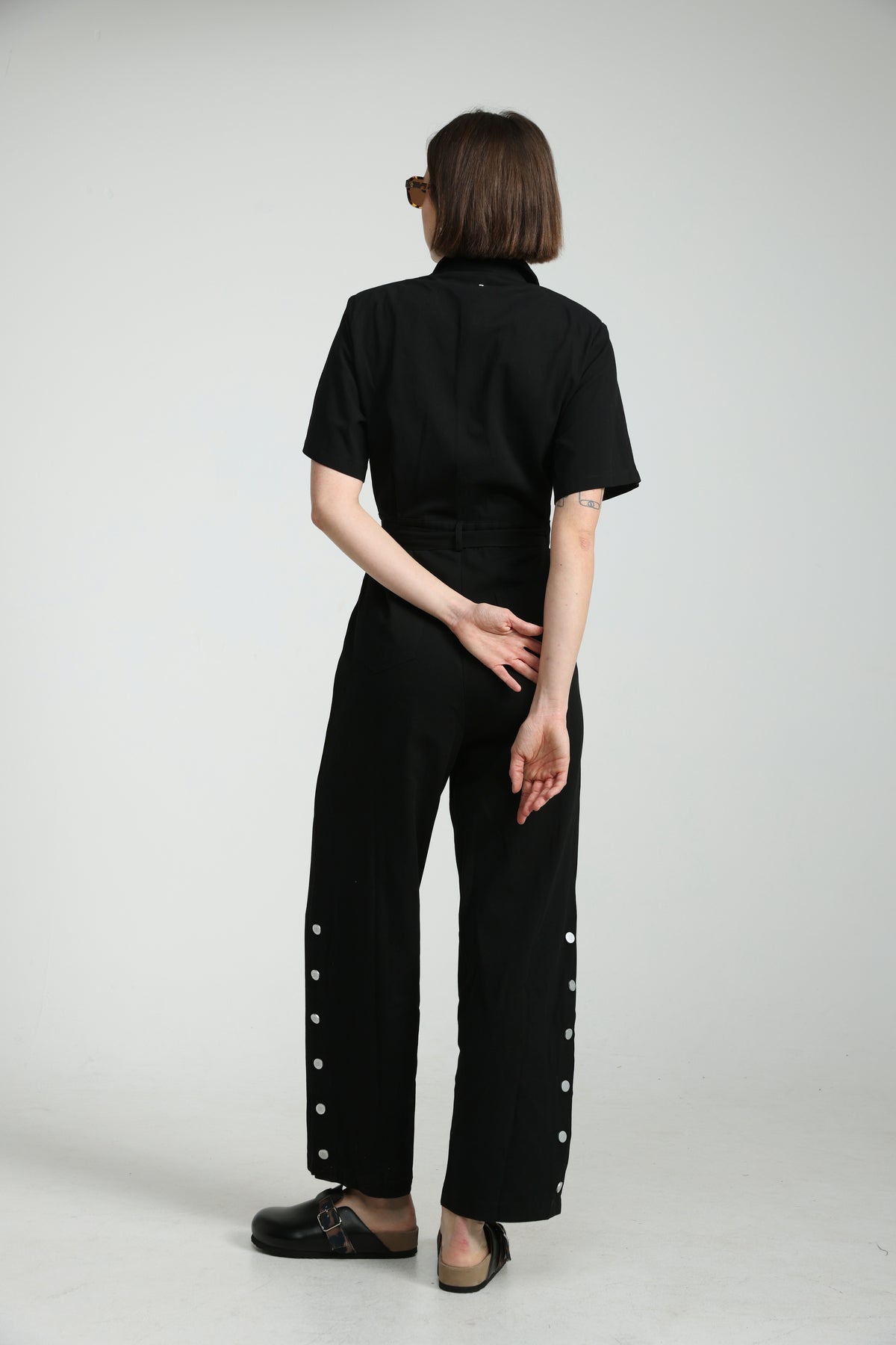 - Snap button opening along legs