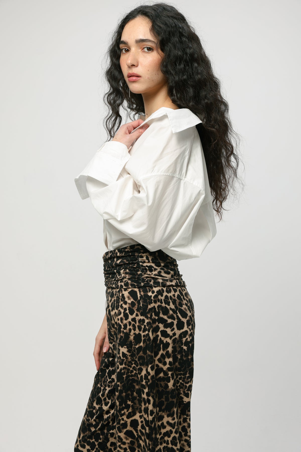 - Wide collar neckline