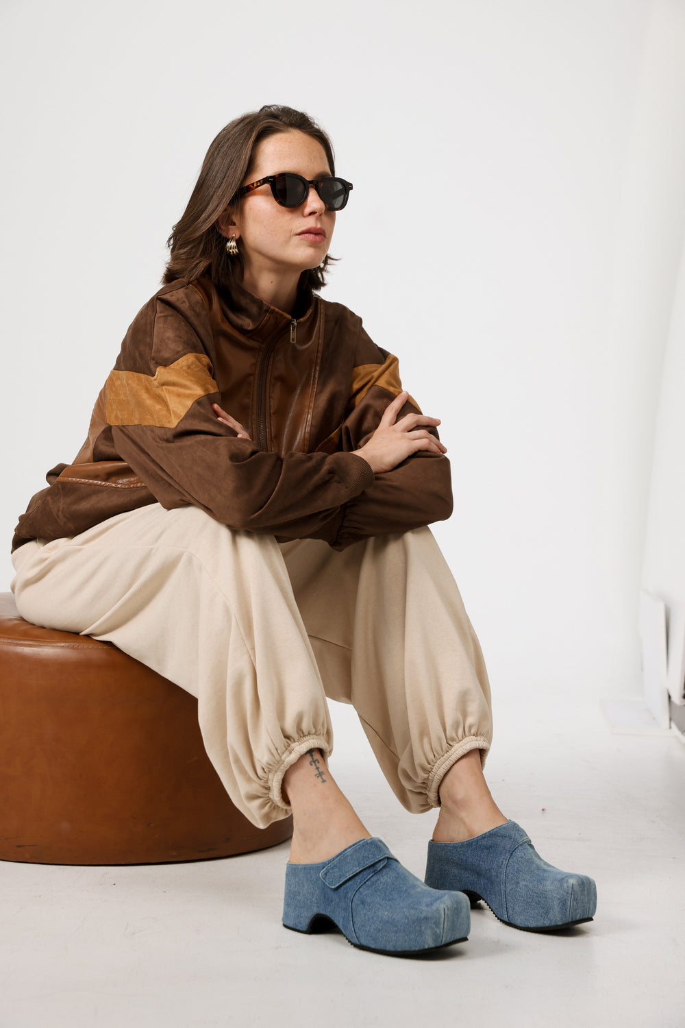 Brown Textured Suede Clogs