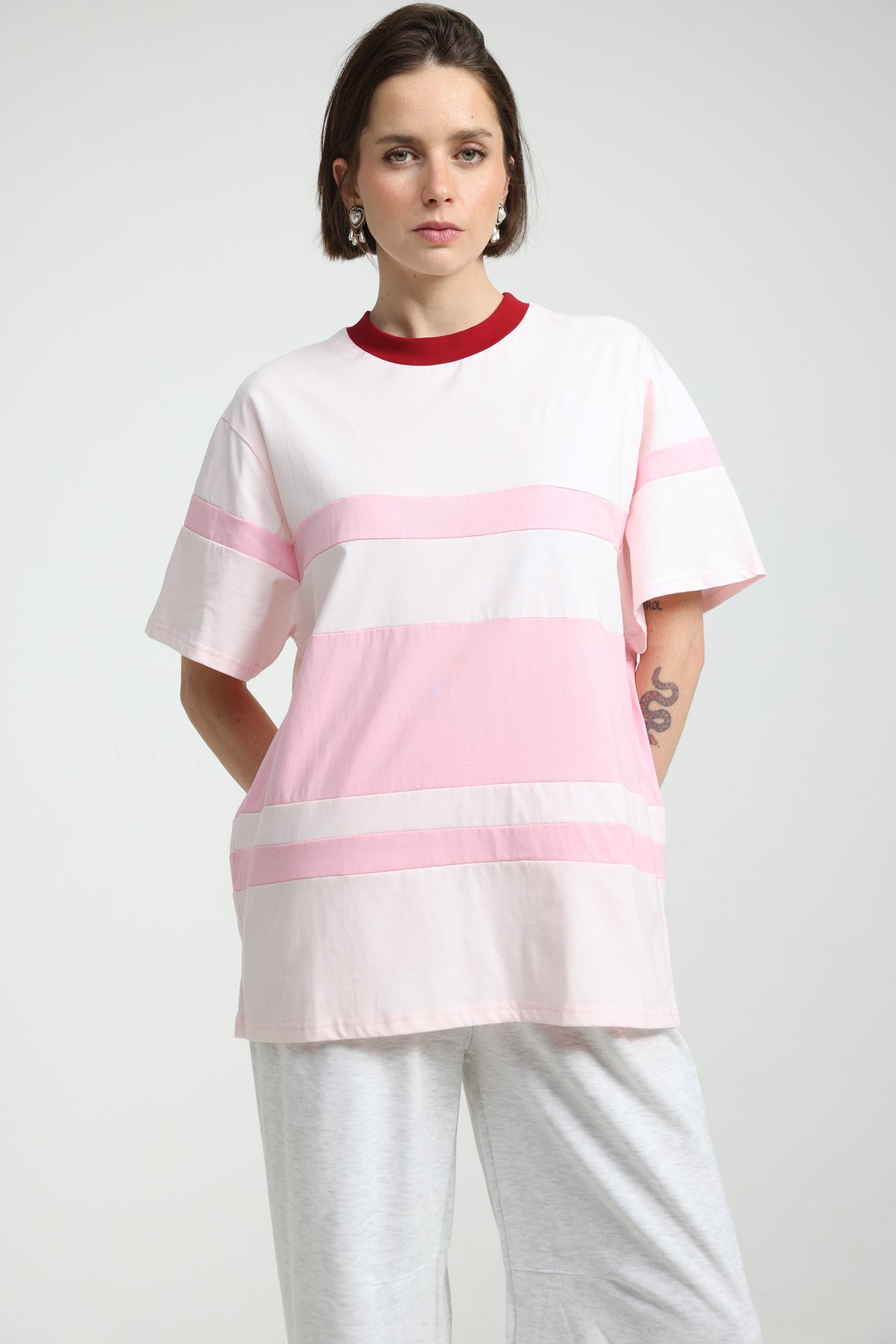 - Clean crew neckline