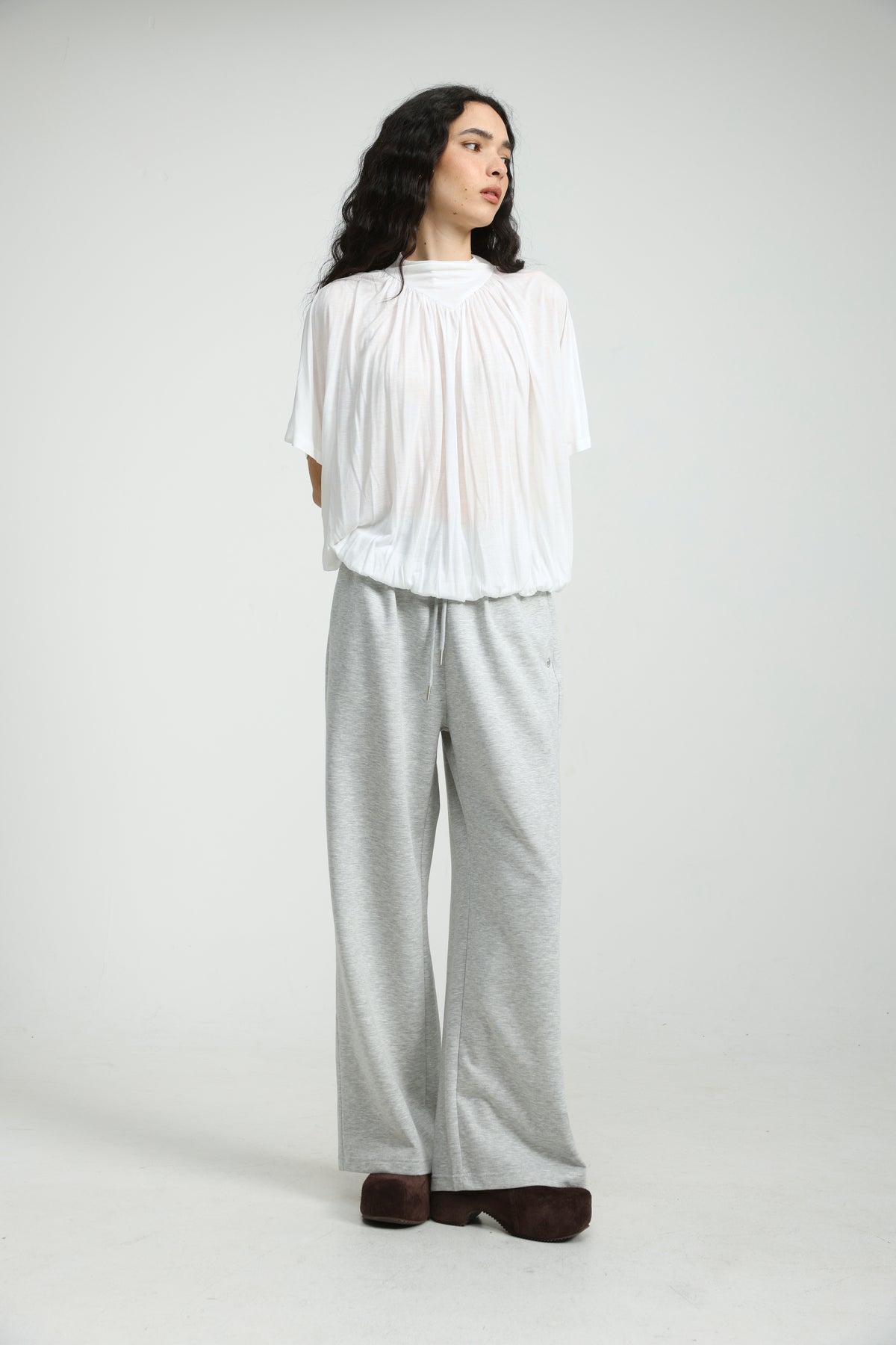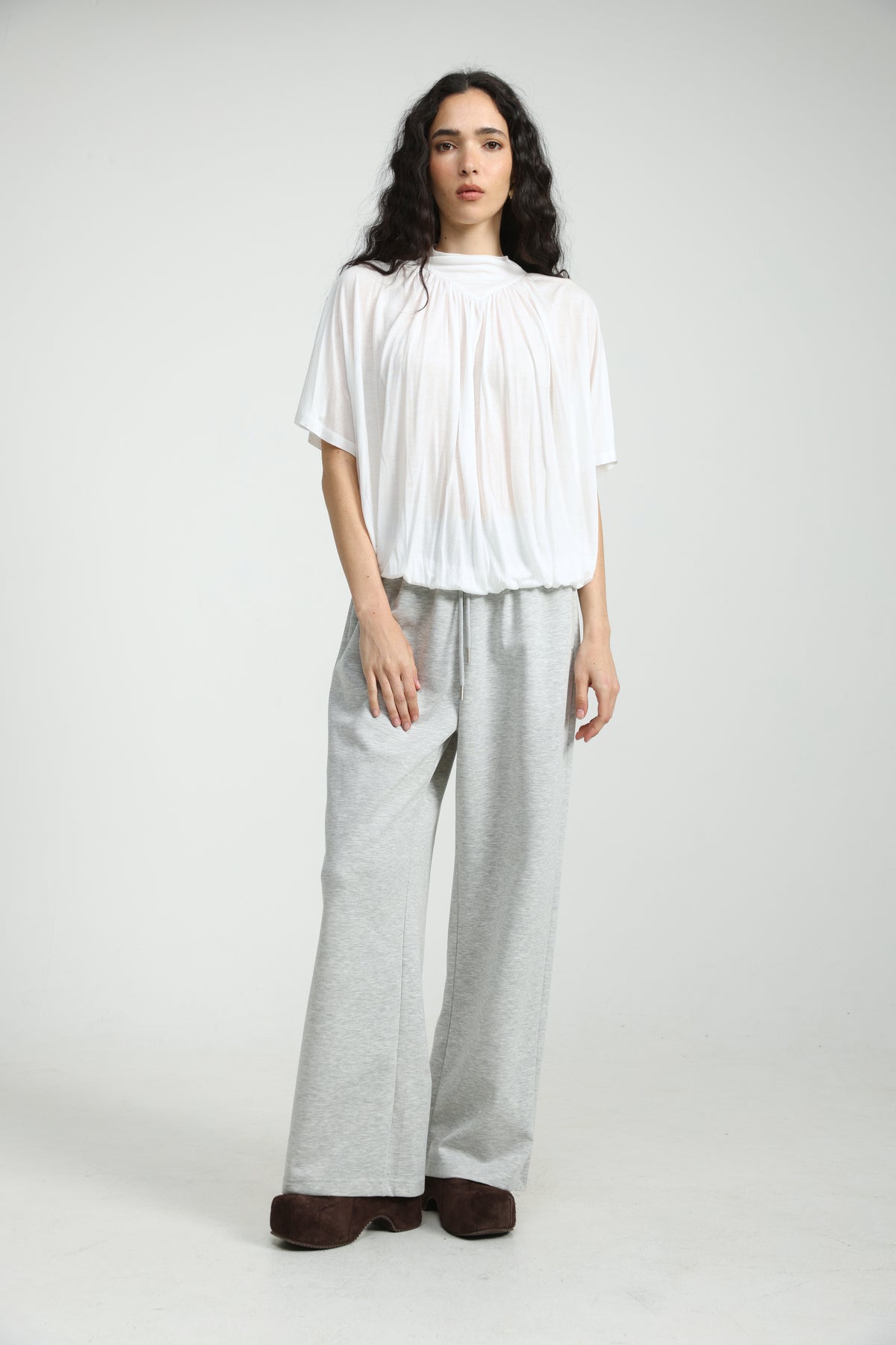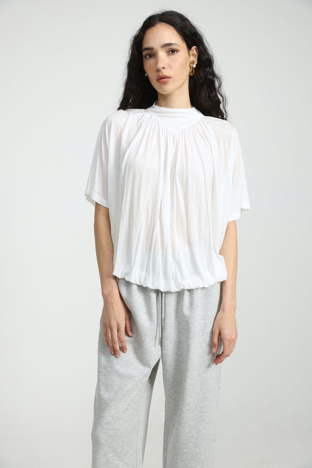 - Gathered neckline detail