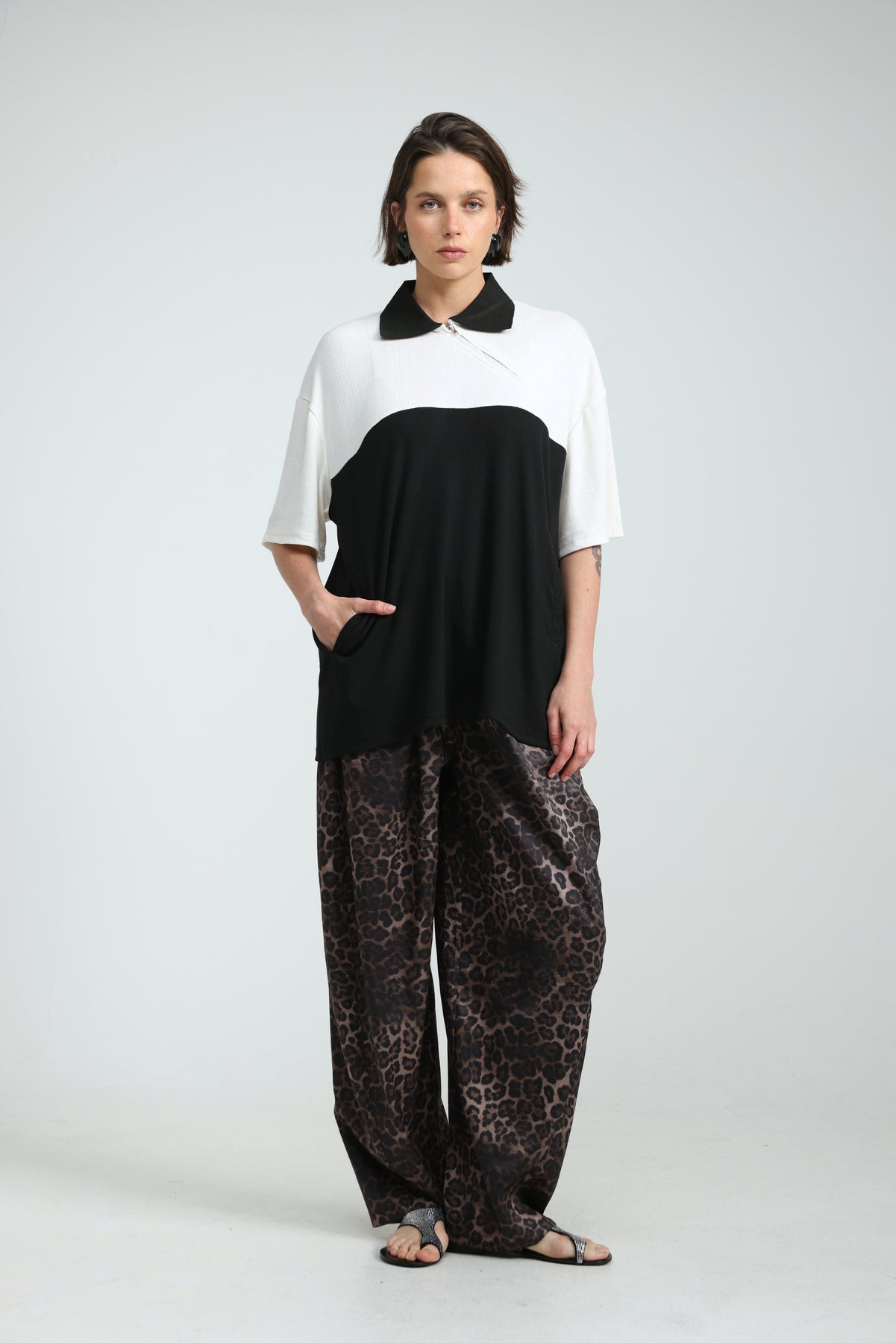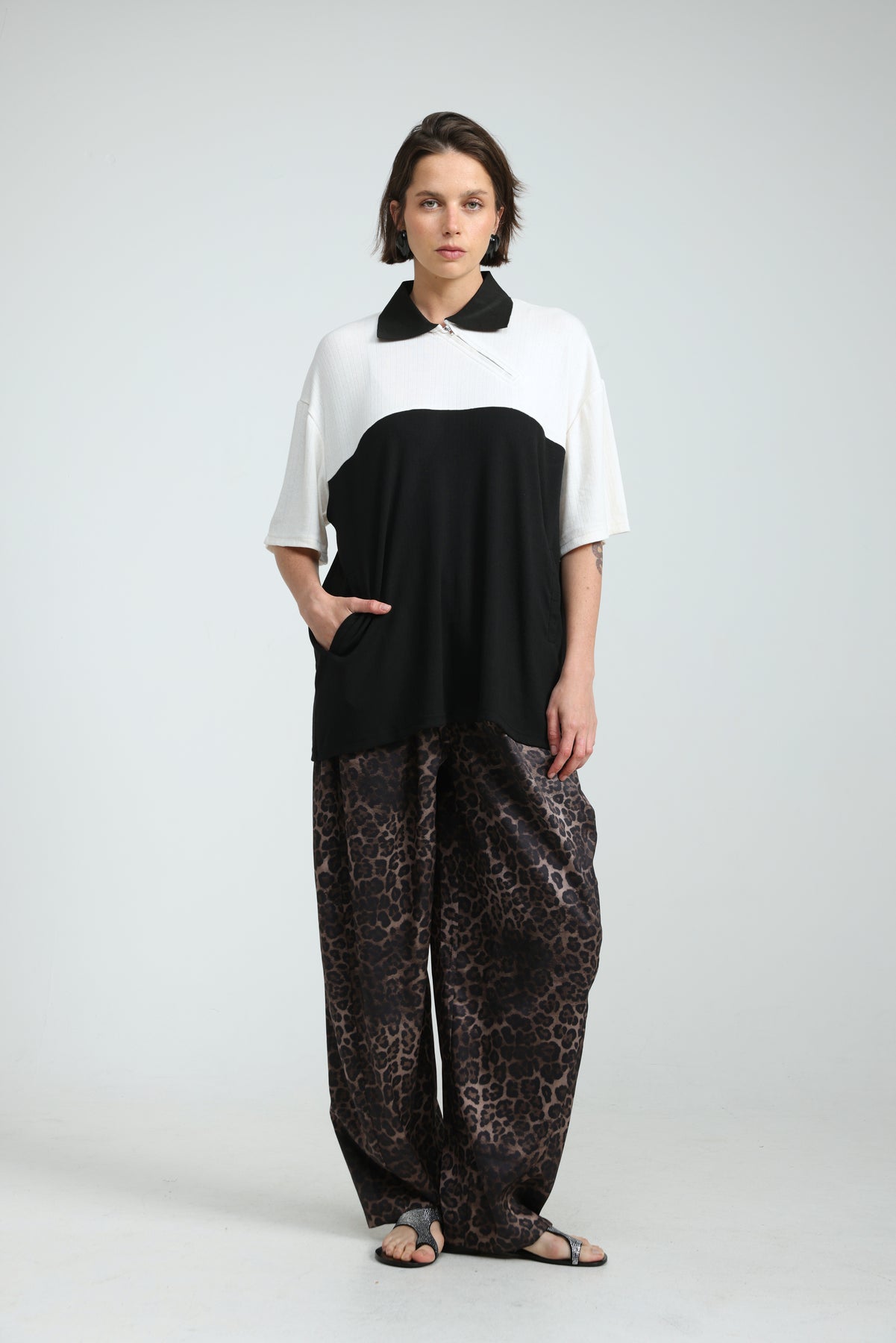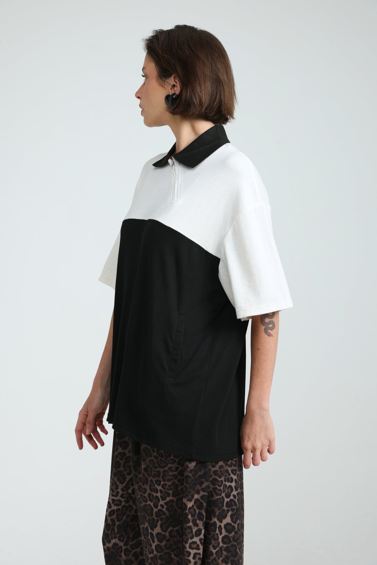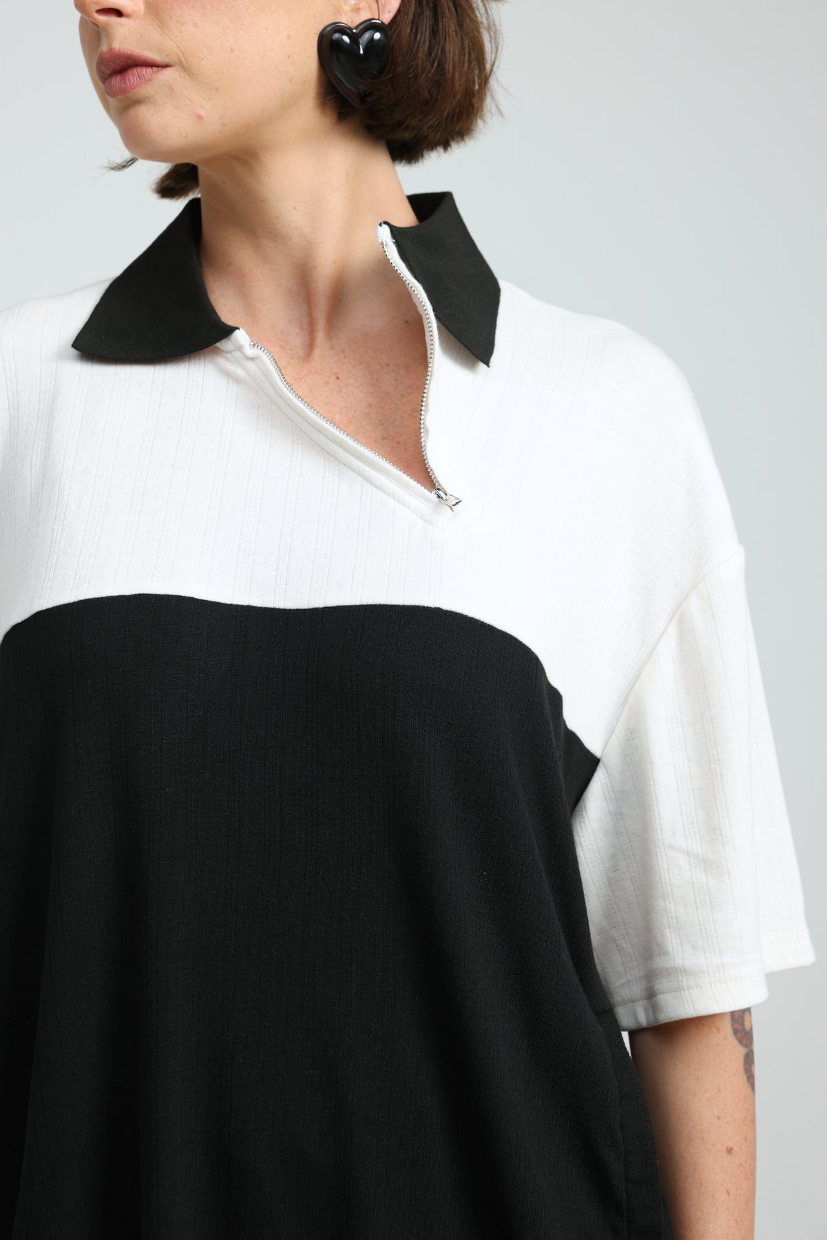 - Polo collar with asymmetric zip