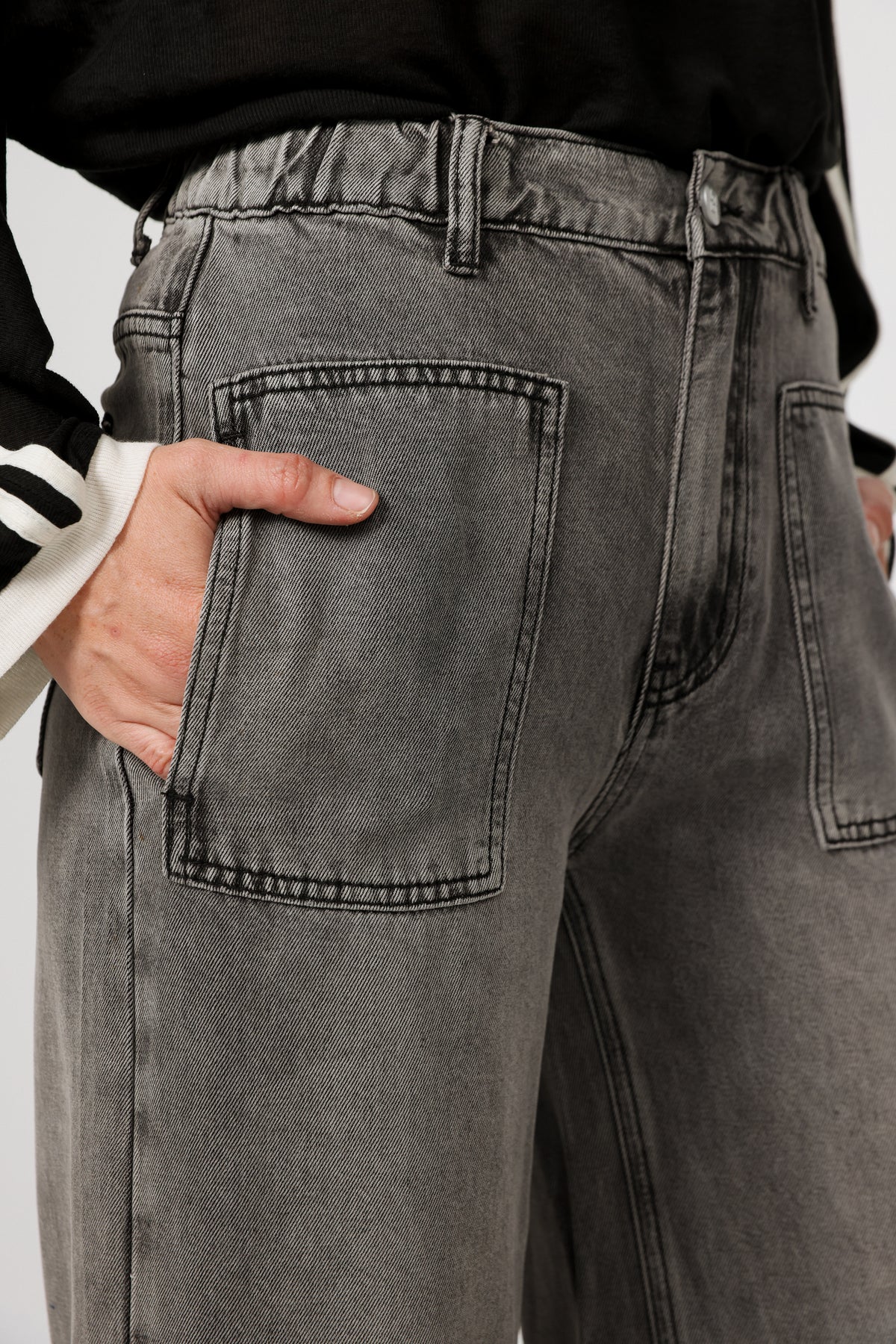 - Elasticated waistband at back
