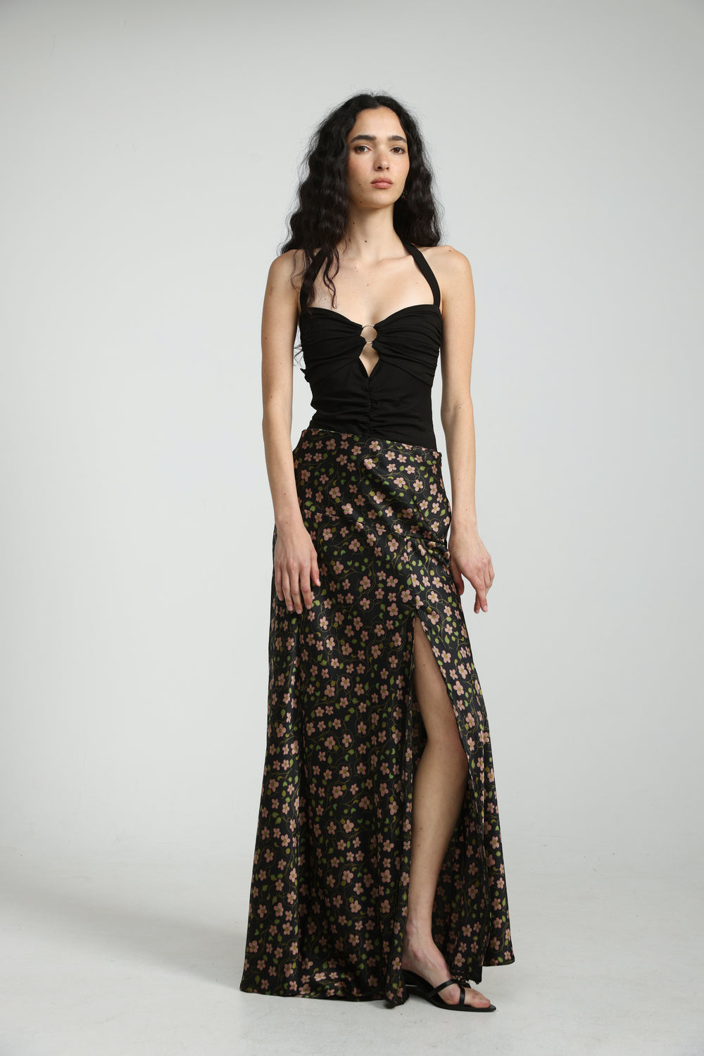 Floral Satin Maxi Skirt