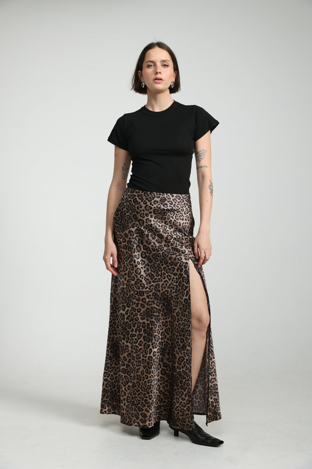 Leopard Satin Maxi Skirt