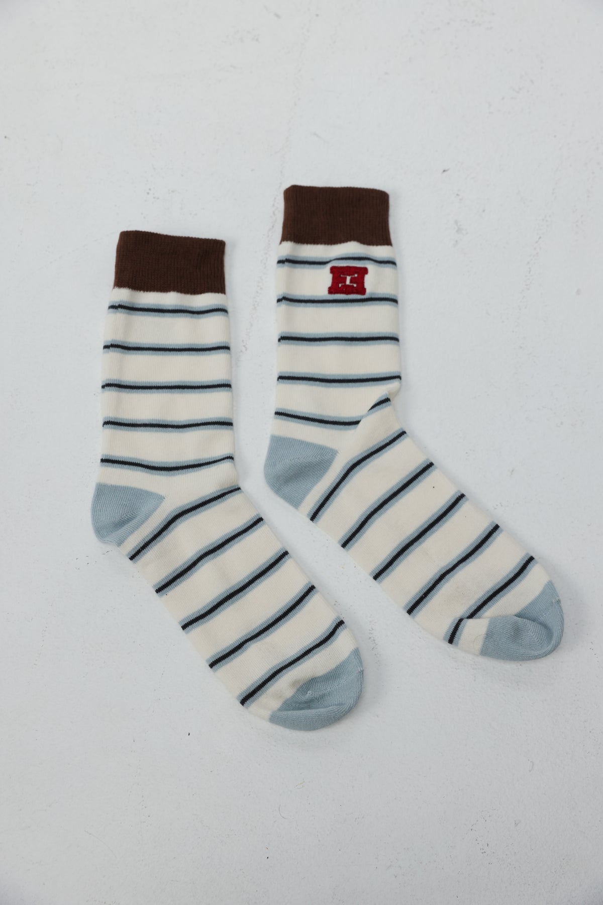 EE Light Blue Stripes/Brown Socks