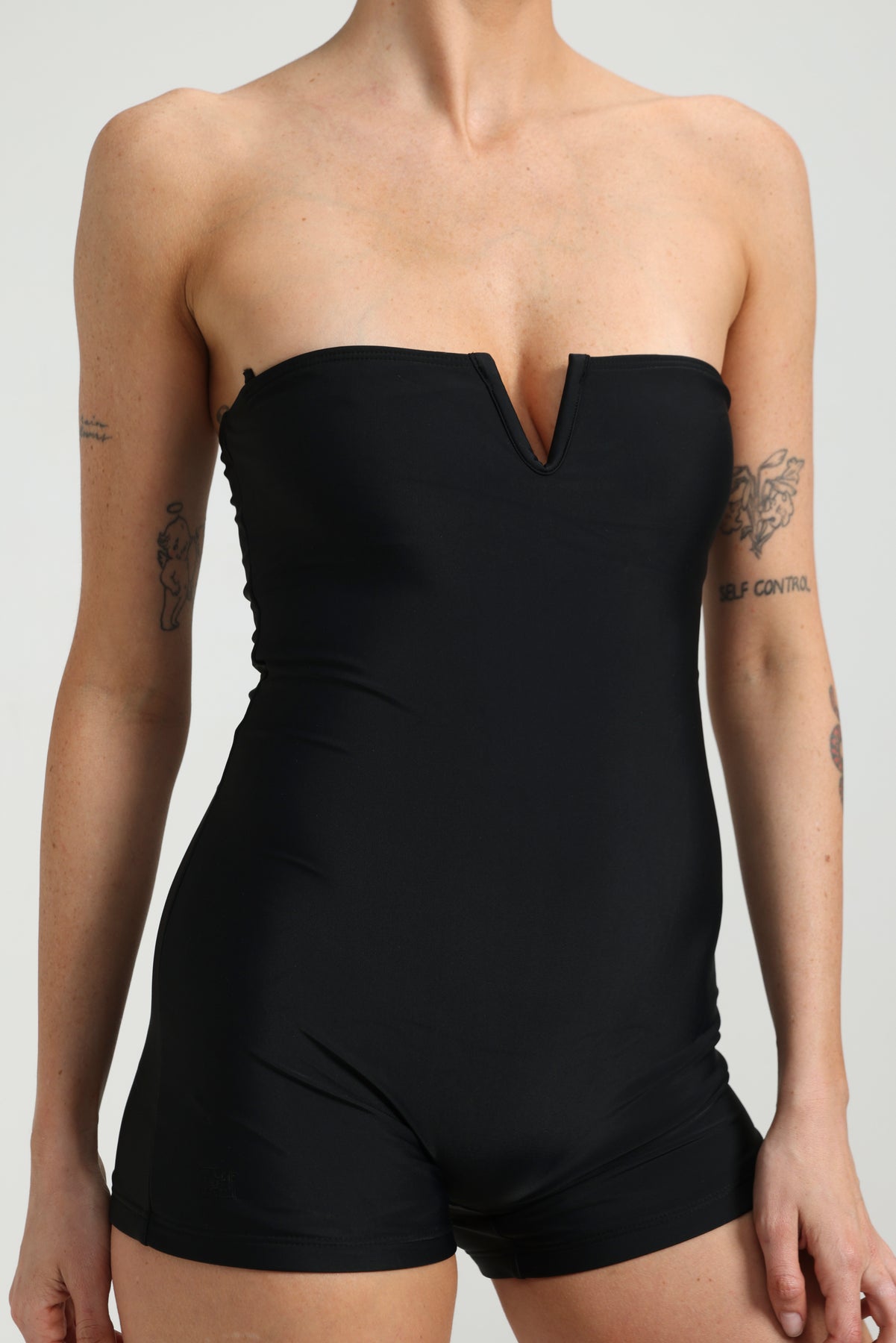 - Structured neckline with front V wire detail