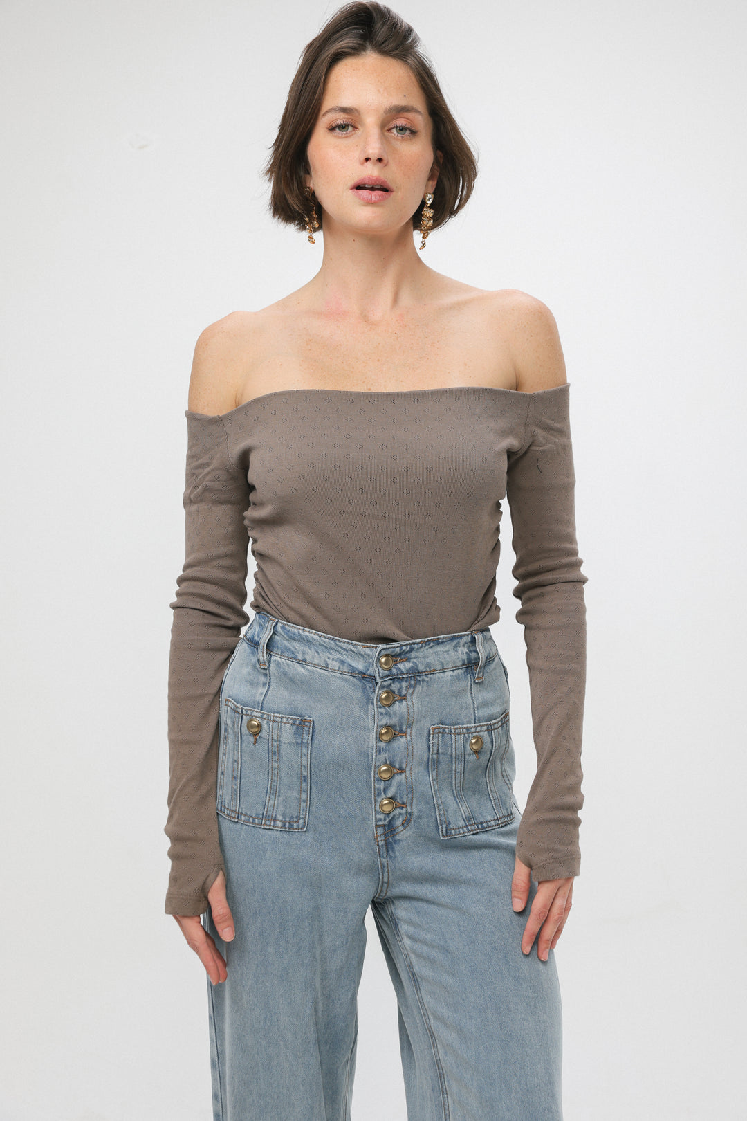 Revival Brown Off Shoulder Top