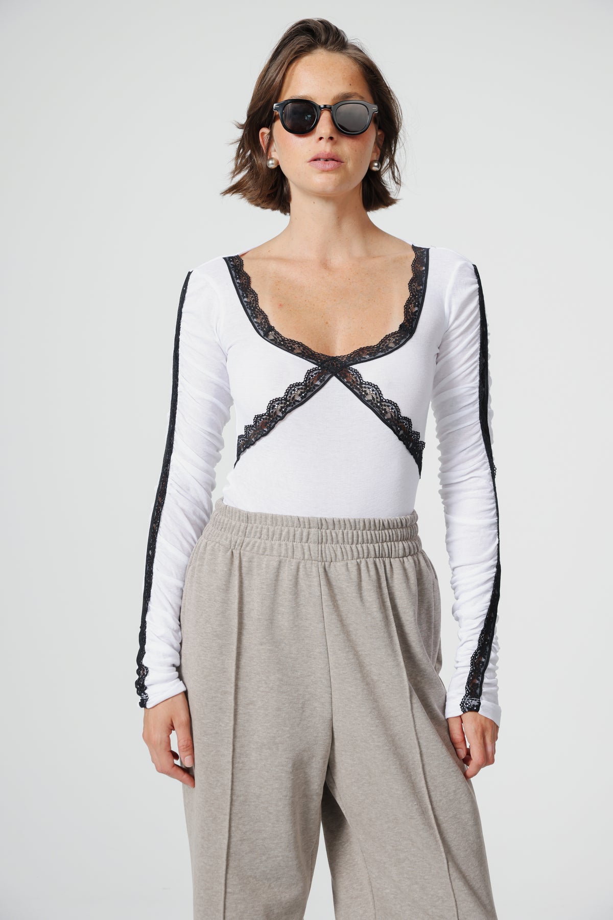 - Long sleeves with lace inserts