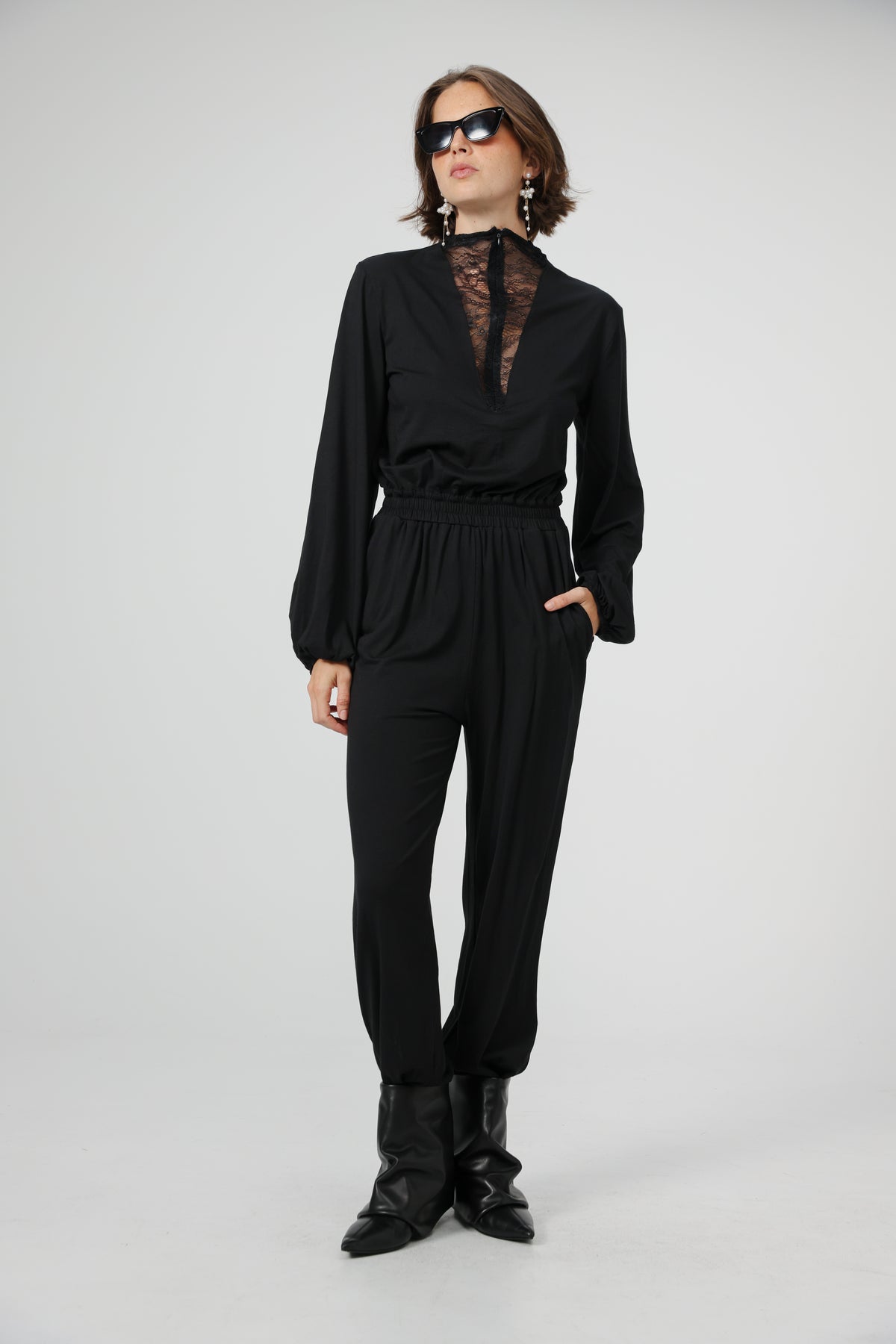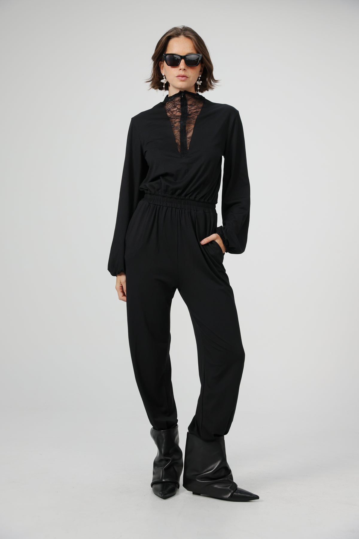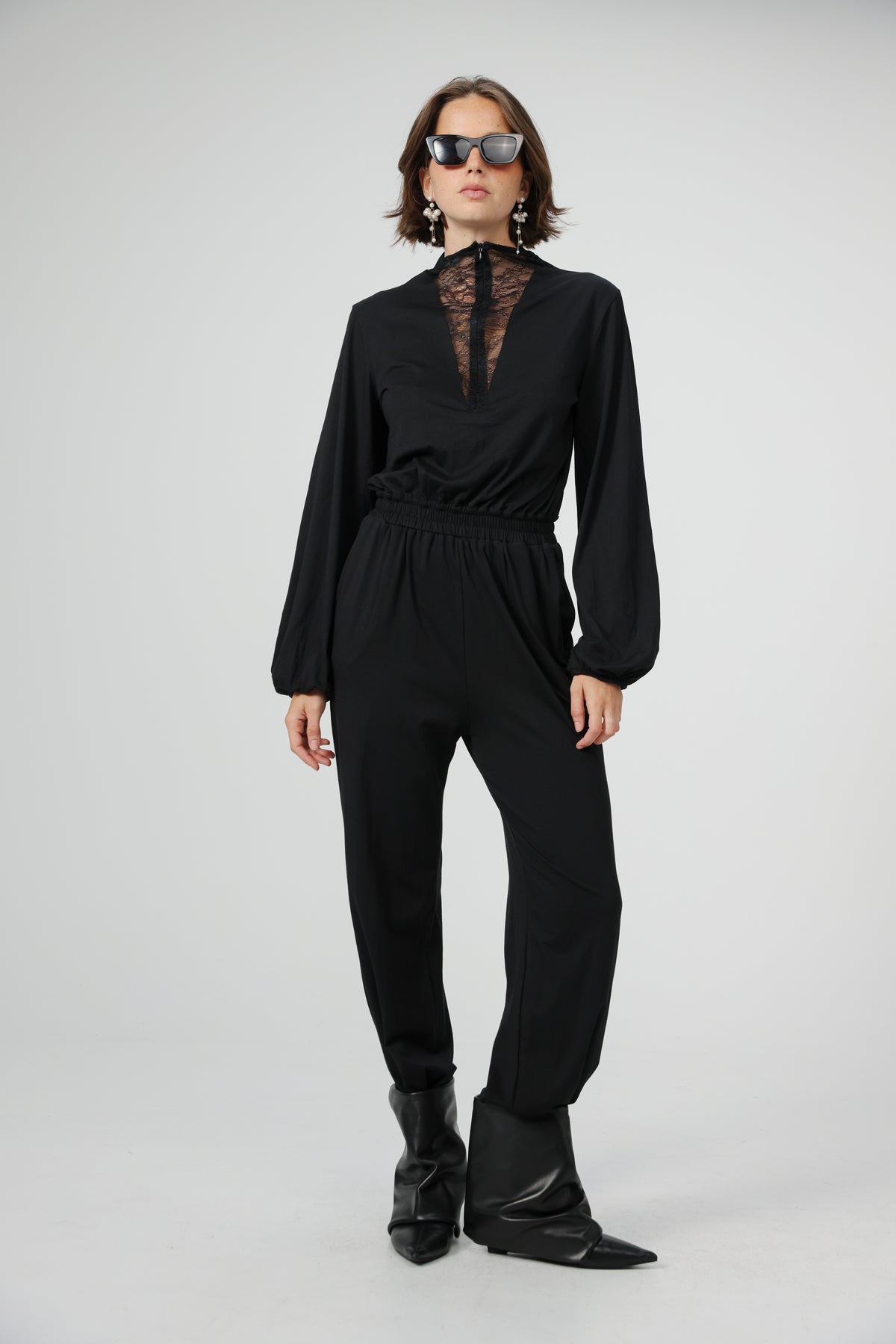 - Deep V lace zip up neckline