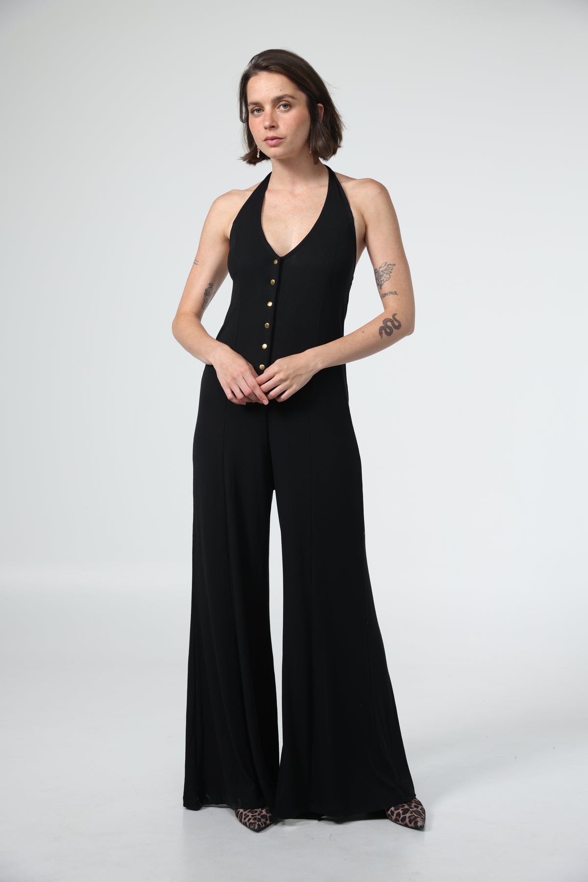 - Halter neckline