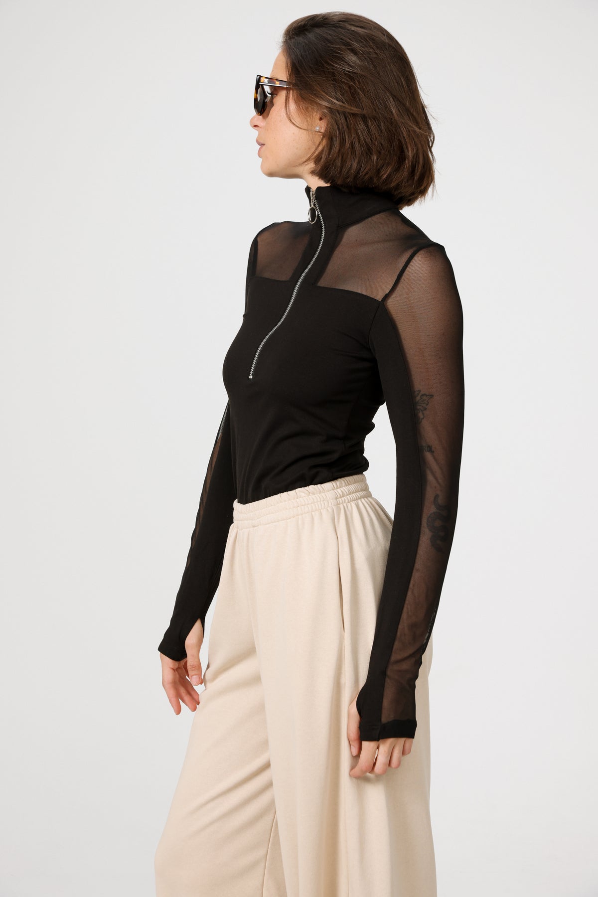 - Long sleeves with mesh insert