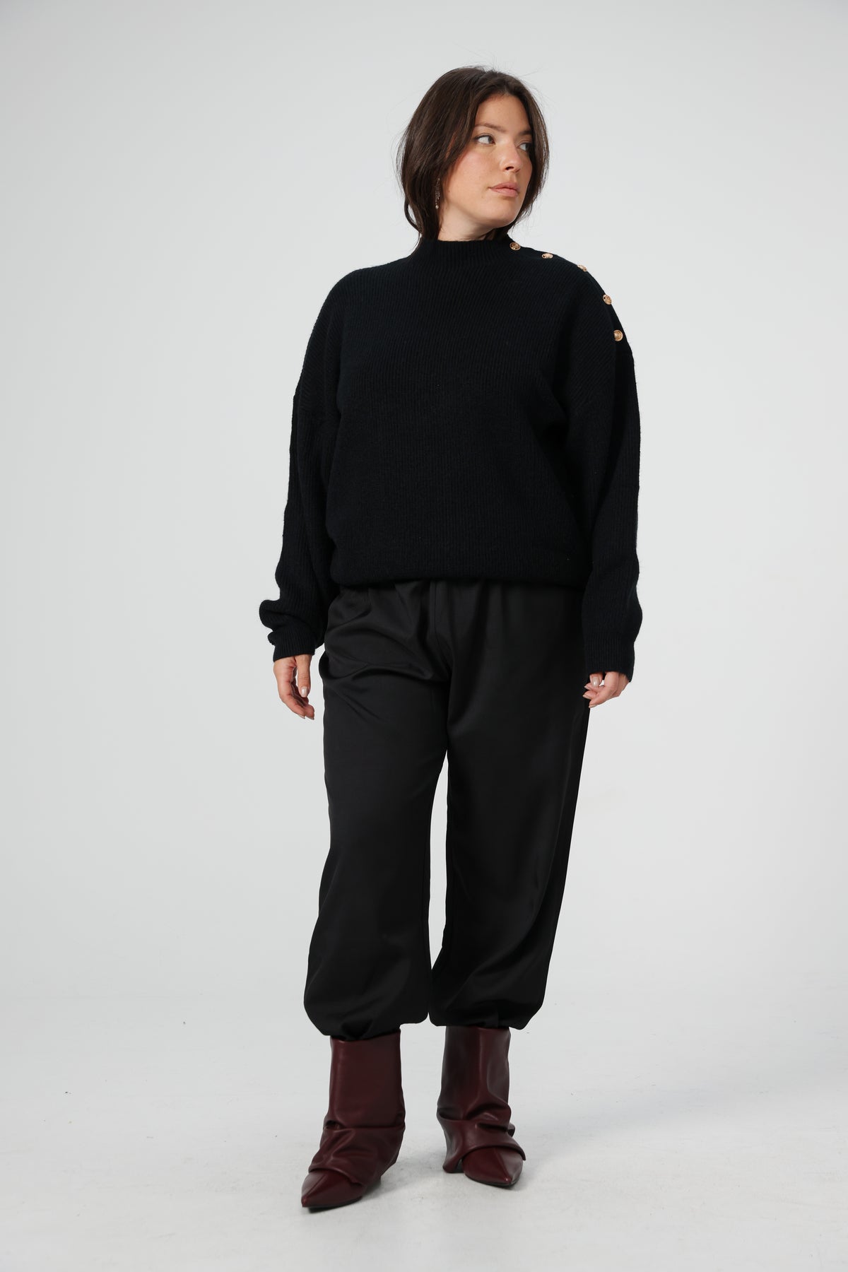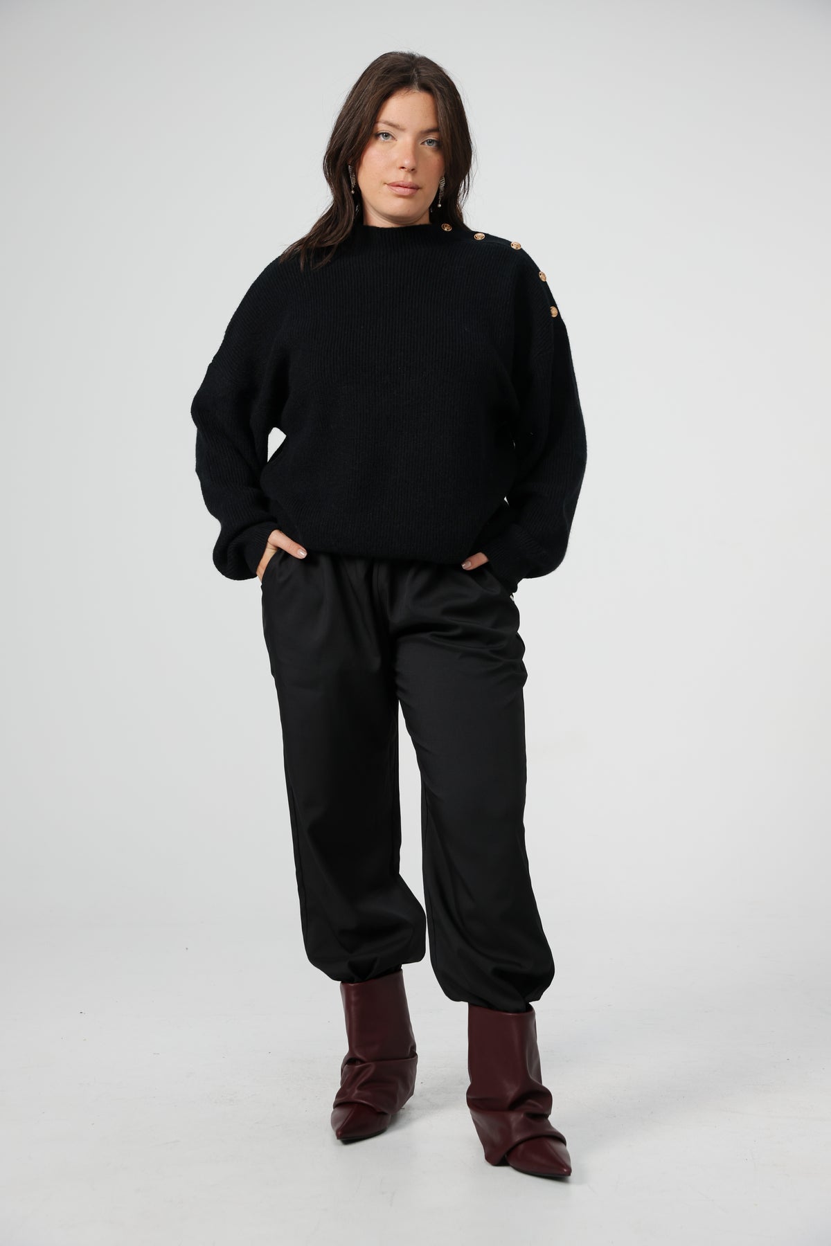 - Drop shoulders, relaxed shape