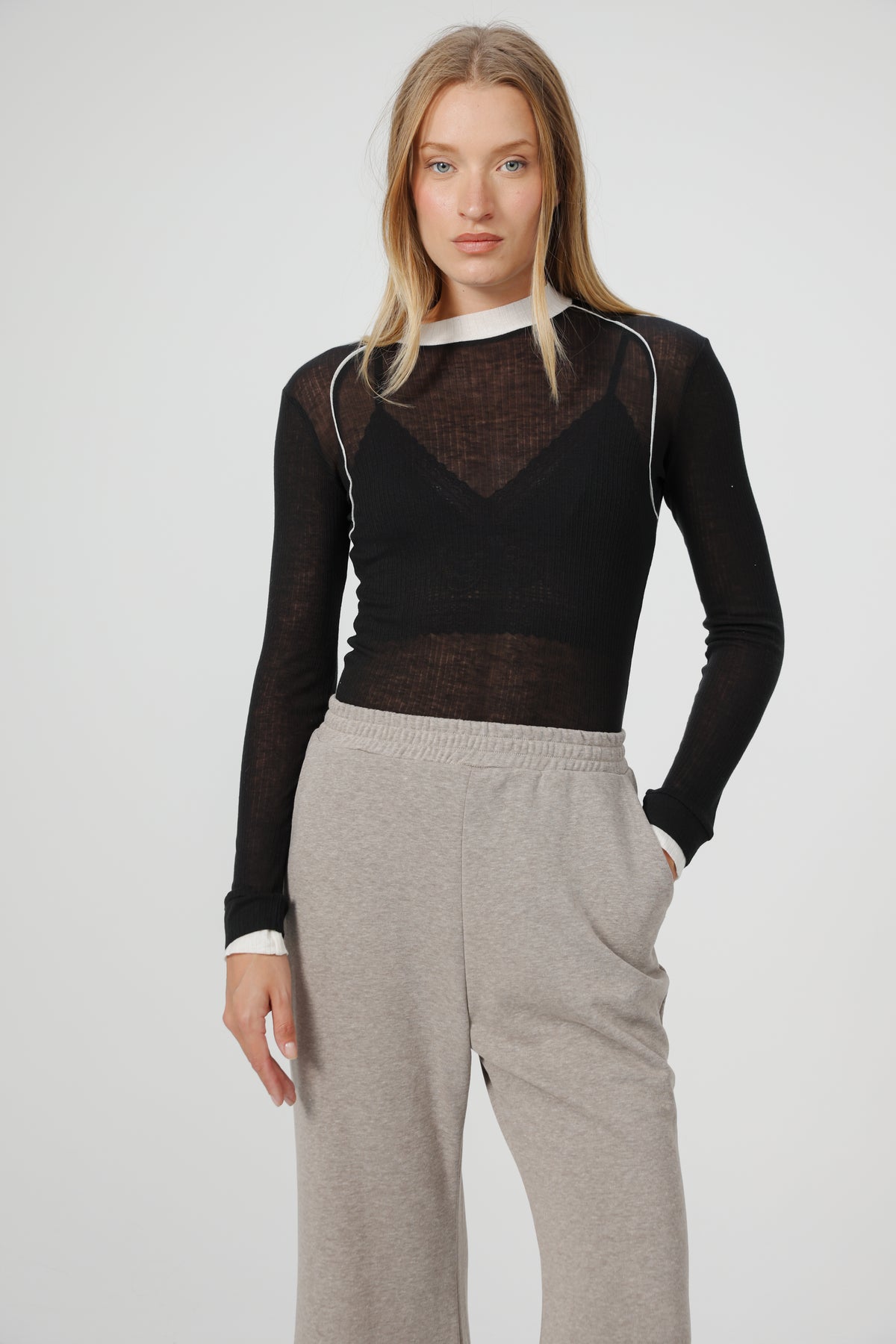 • Contrast neckline and seams