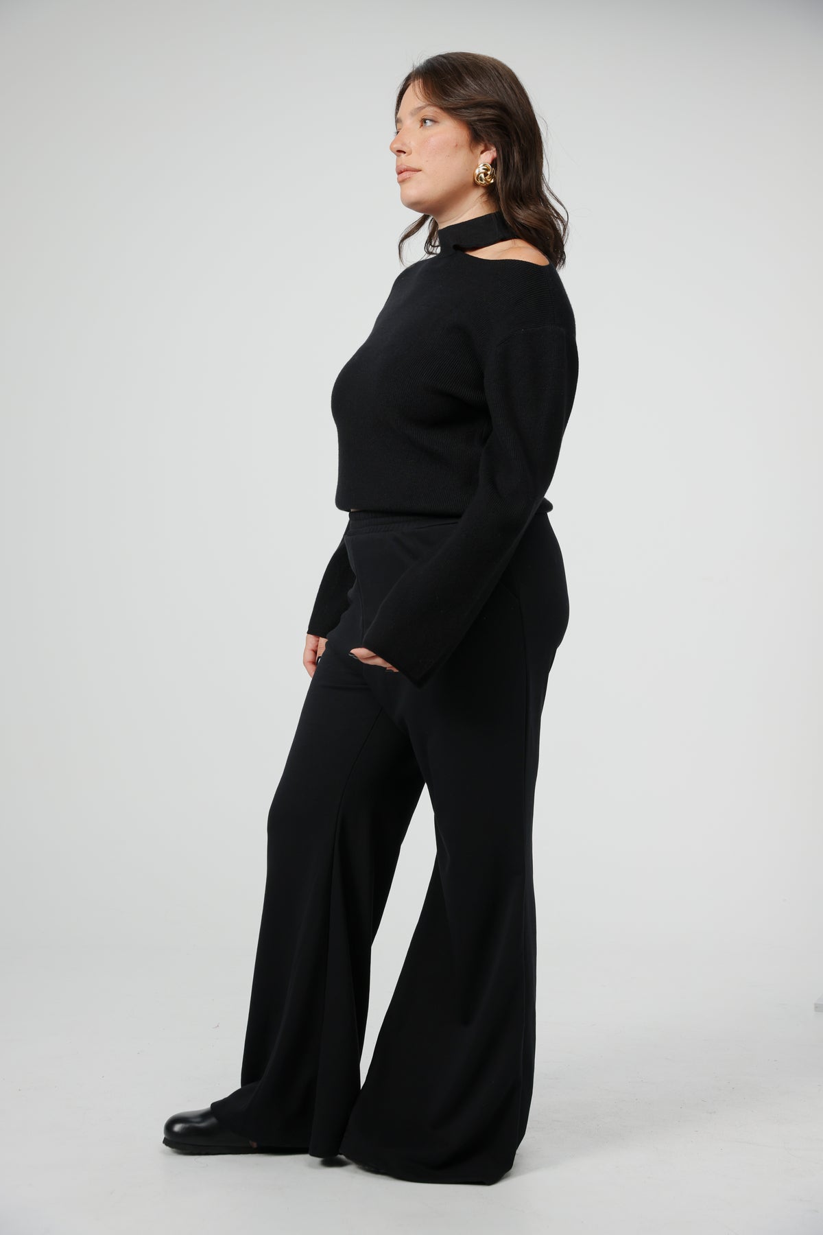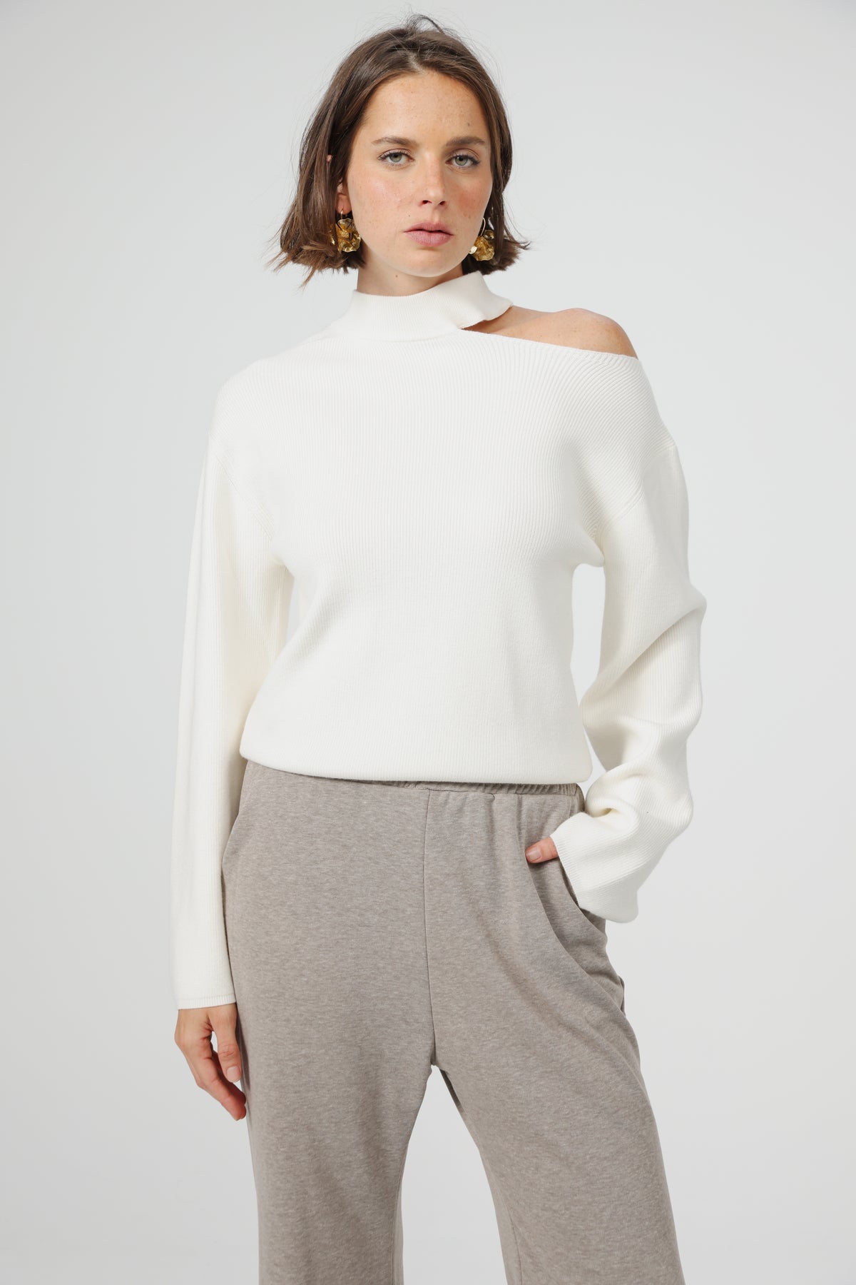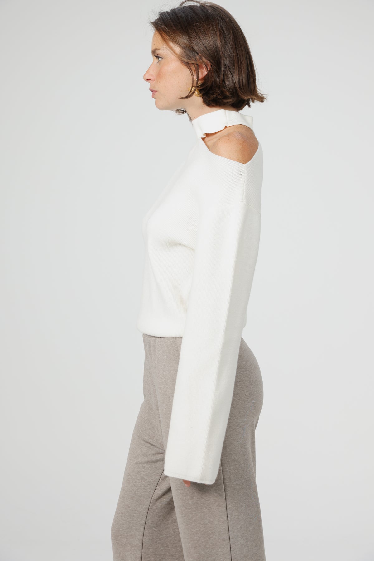 - Asymmetrical cut-out at the shoulder