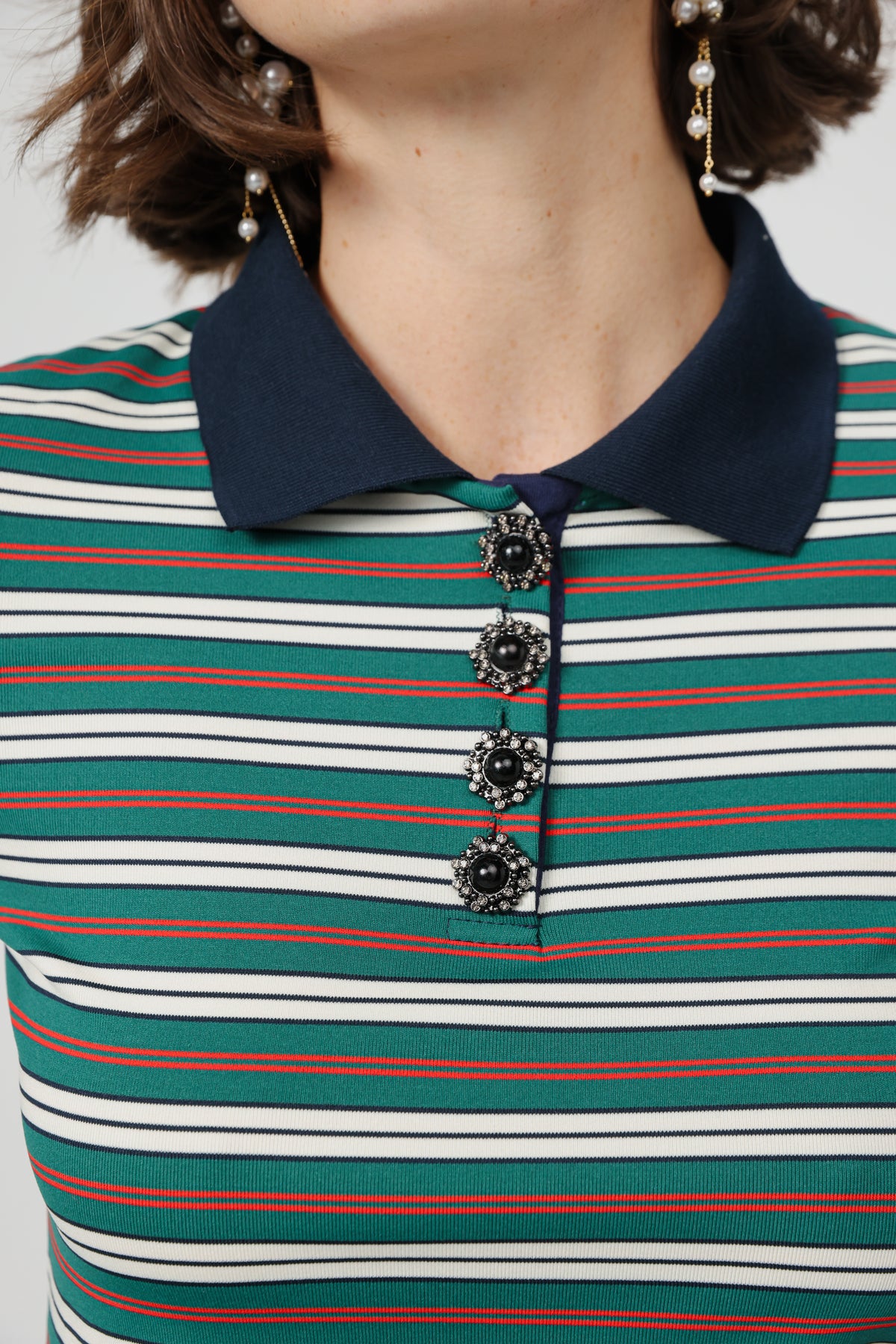 - Jeweled button placket