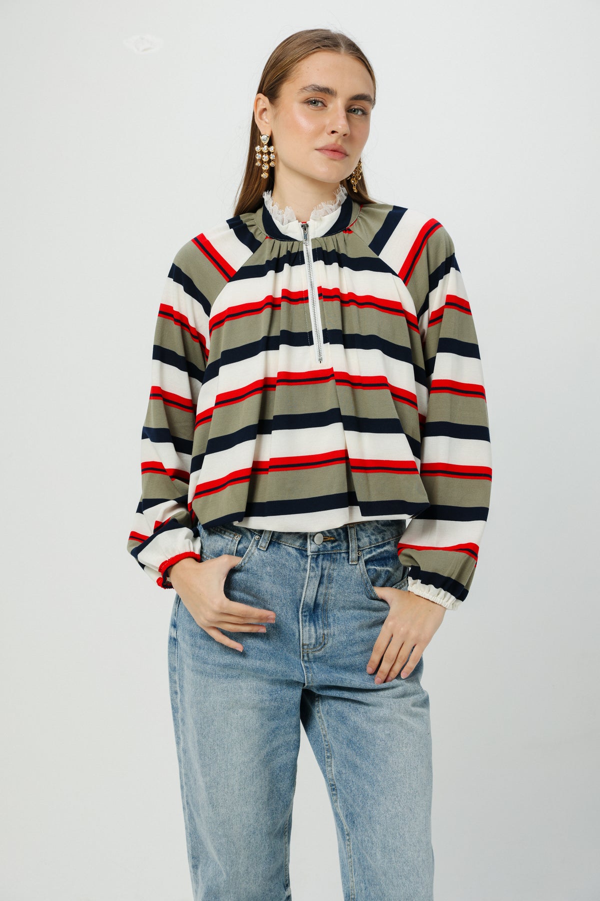 - Half-zip front closure