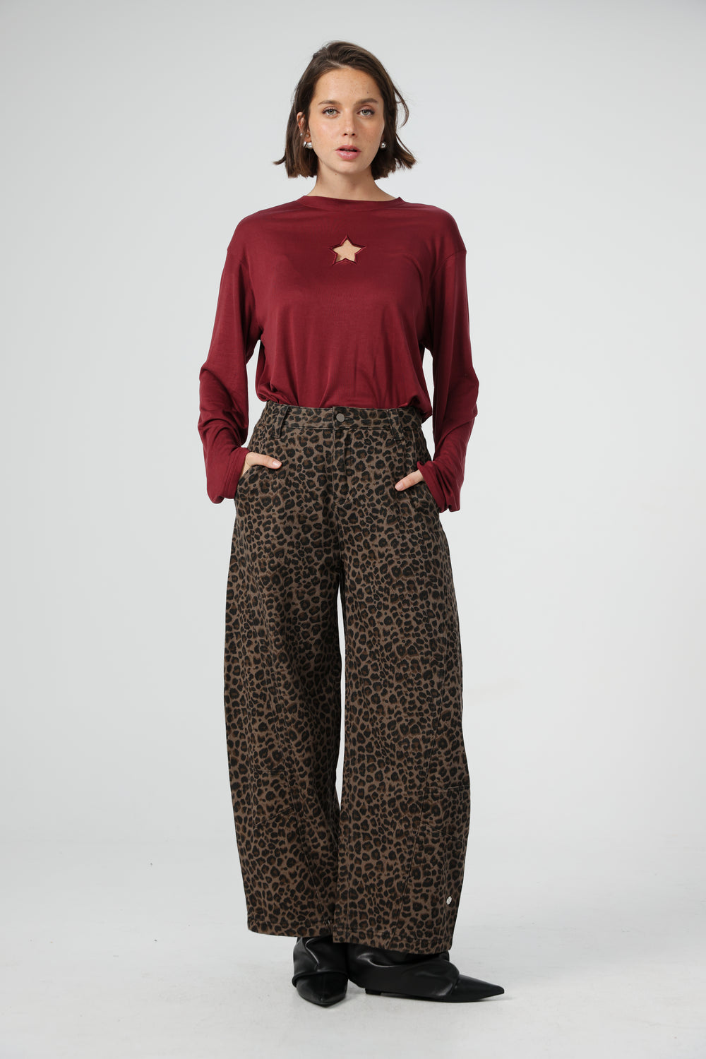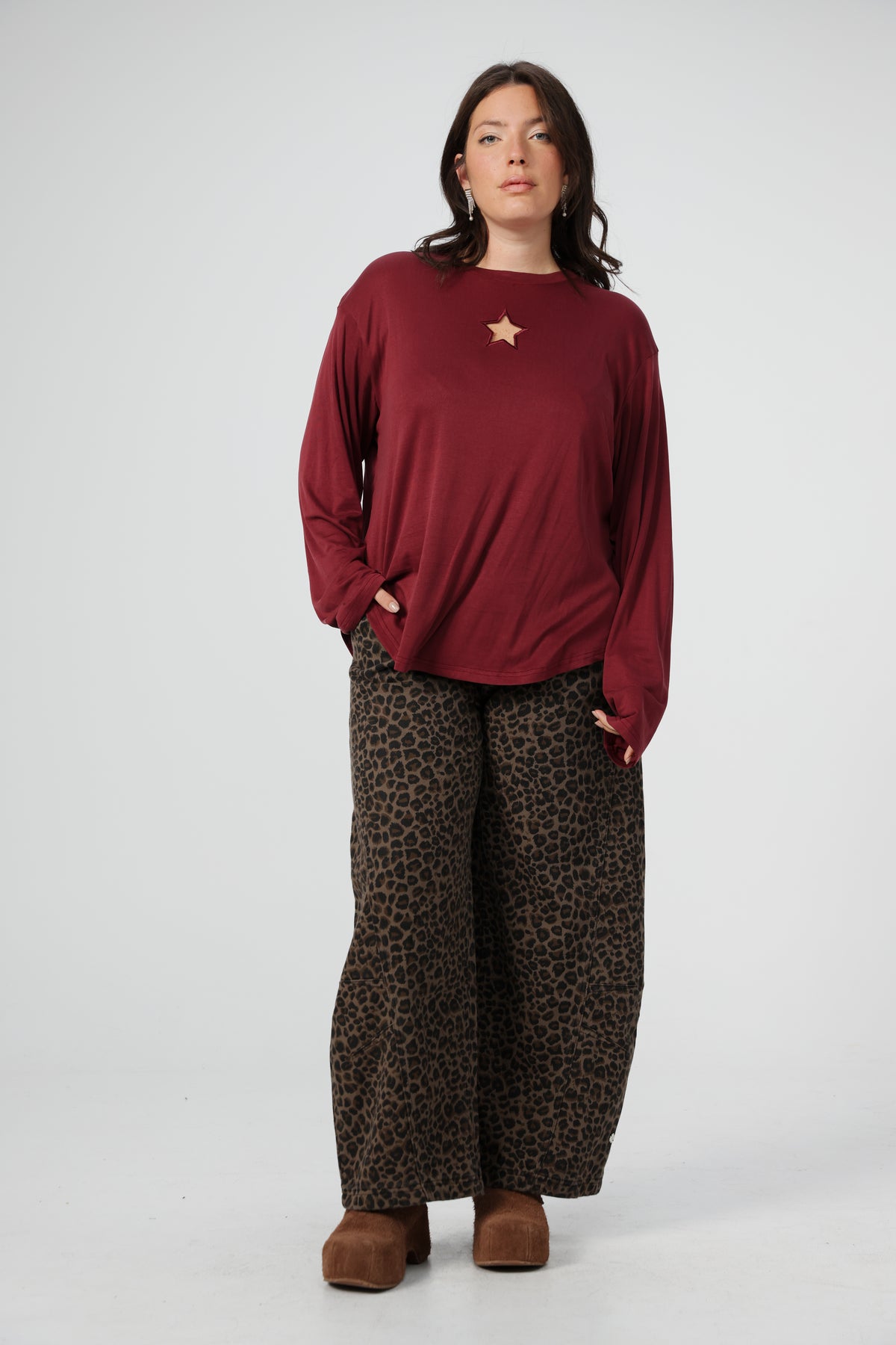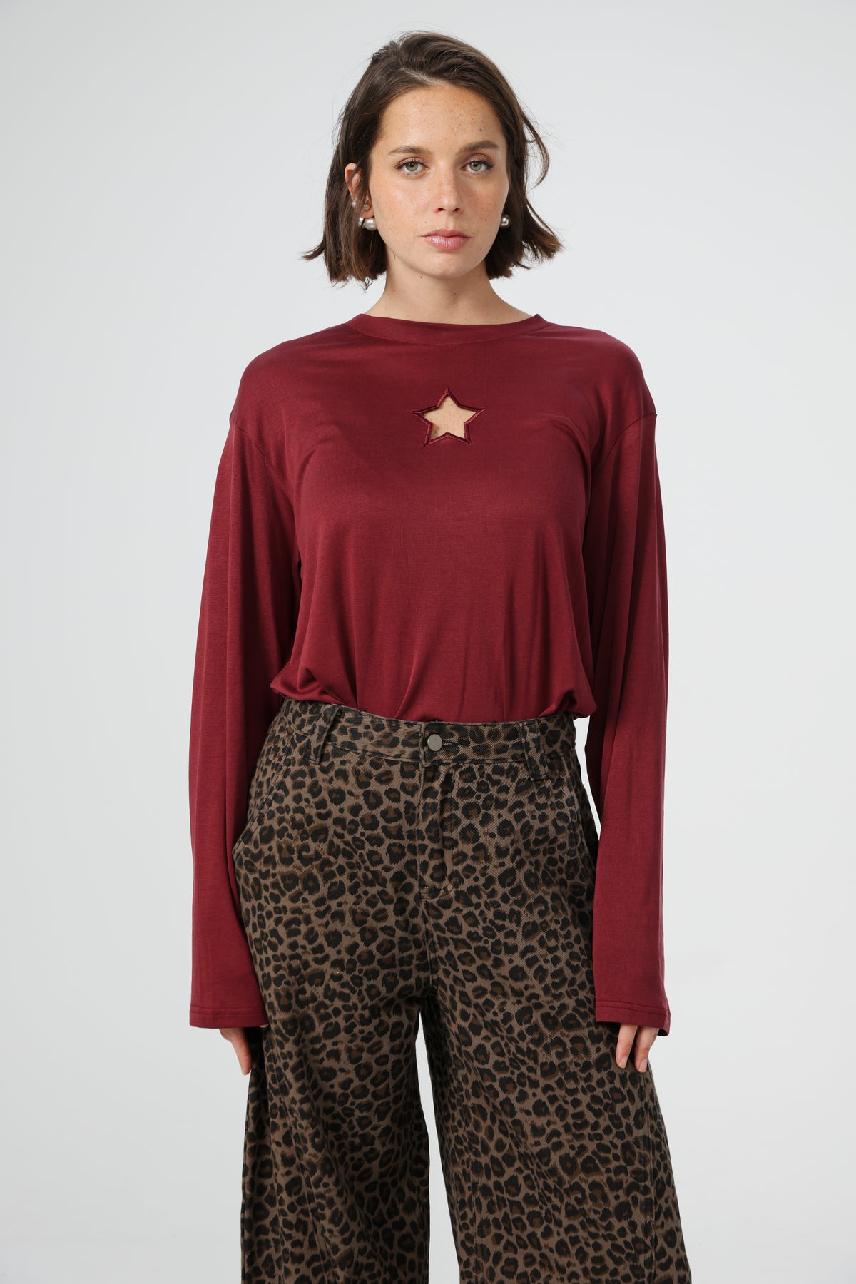• Star-shaped cutout at neckline