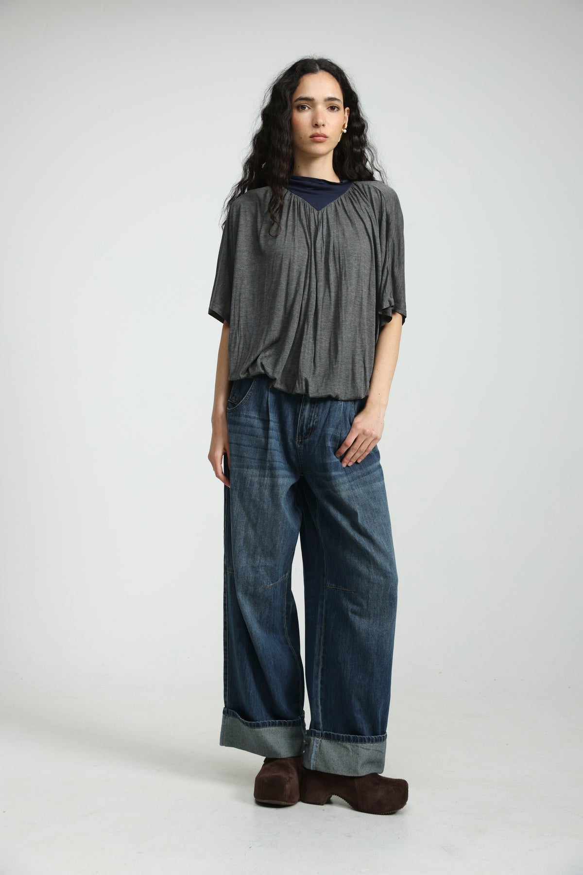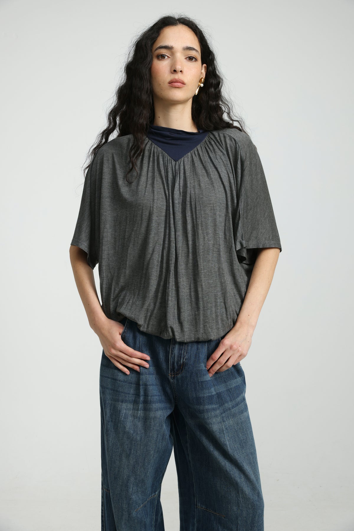- Gathered neckline detail
